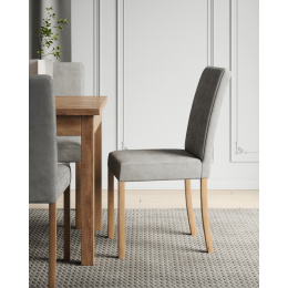 Stylová židle RODOS 81 se ideálně hodí do vaší jídelny. Nábytek se vyznačuje stabilními nohami vyrobenými z bukového dřeva a čalouněným sedákem a opěradlem s libovolnou potahovou látkou na výběr zobrazenou v galerii. Díky široké škále barev se židle hodí do každého interiéru a doplní váš obývací pokoj, kuchyň nebo jídelnu...