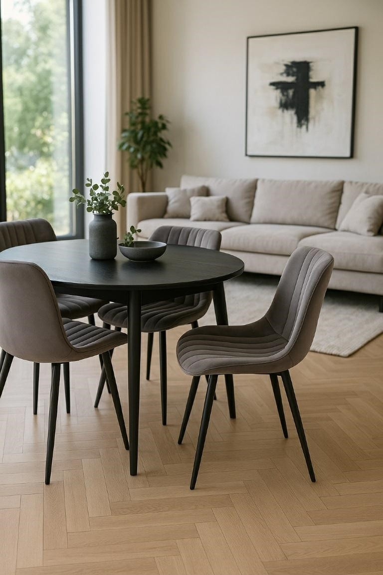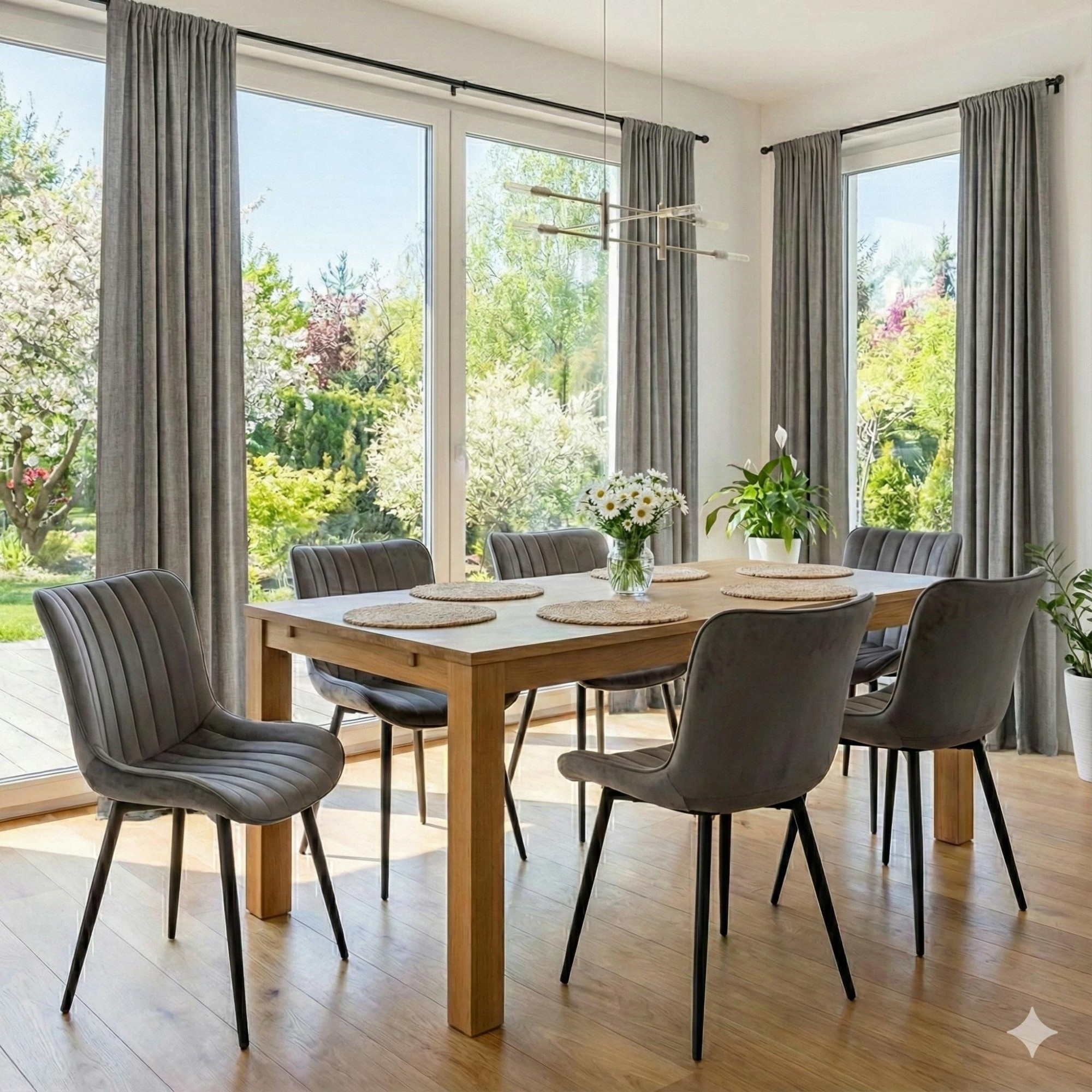 Čalouněná židle velurem Roxino je elegantní a funkční řešení pro jídelnu, obývací pokoj nebo kancelář. Měkká, příjemná na dotek velurová tkanina mu dodává moderní charakter a zároveň zajišťuje pohodlí při sezení. Stabilní konstrukci tvoří kovové nohy lakované práškovou barvou, které zaručují trvanlivost a odolnost proti poškození. Nohy jsou vybaveny plastovými podložkami, které chrání podlahu před poškrábáním. Židle vyžaduje vlastní montáž a její maximální zatížení je 120 kg. To je ideální volba pro osoby, které si cení stylu a praktičnosti v jednom. Velurové sedadlo v šedé látce s vertikálním prošíváním. Šířka sedáku 49 cm Hloubka sedáku 38 cm Průměr nohou 2 cm Balení 2 ks v 1 kartonu Vyžaduje montáž Max. zatížení 120 kg.