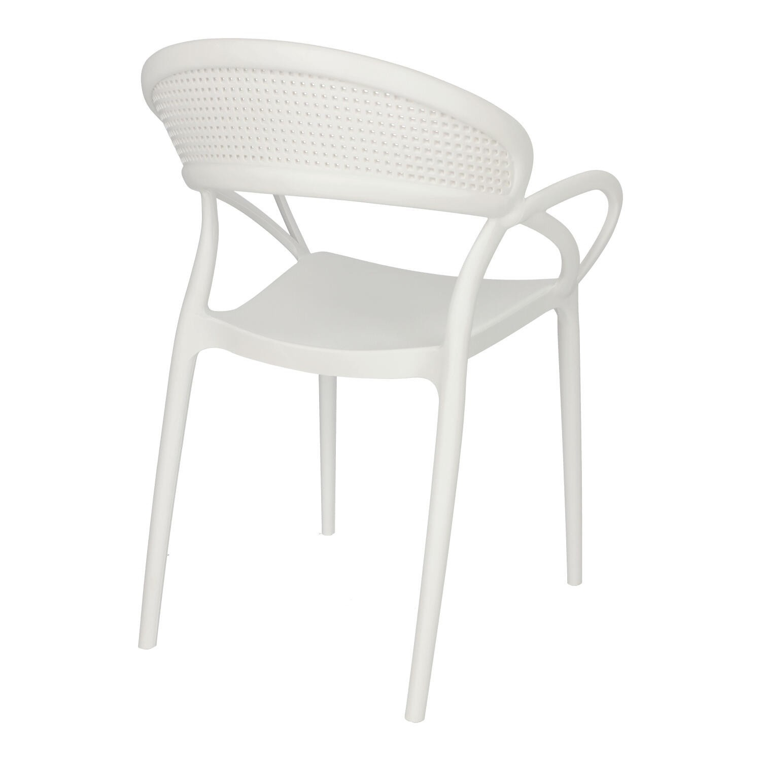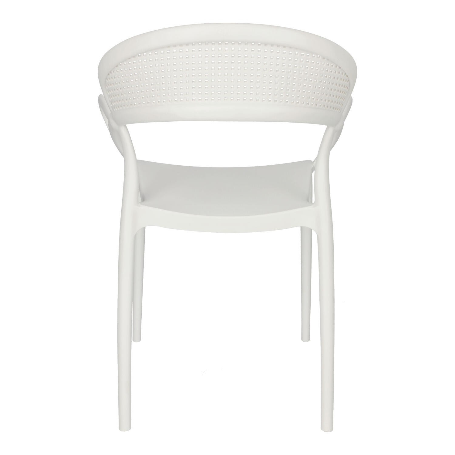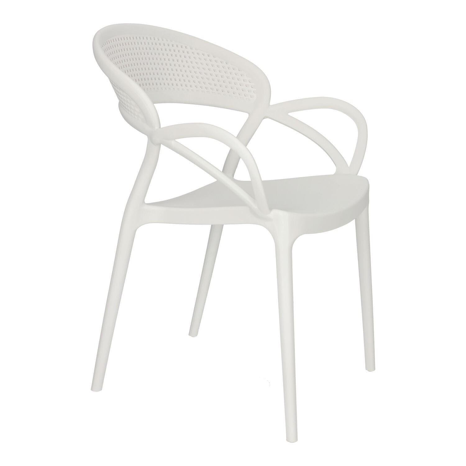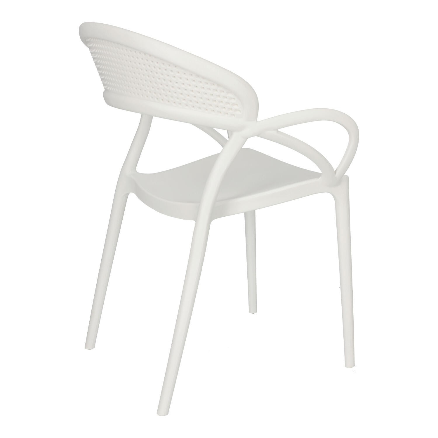 Bílá plastová židle Salmi je ideálním nábytkem na terasu nebo do zahrady. Židle se stohuje do 8 kusů na hromadu. Díky odolnému materiálu, ze kterého je vyrobeno, je křeslo vhodné pro venkovní použití.