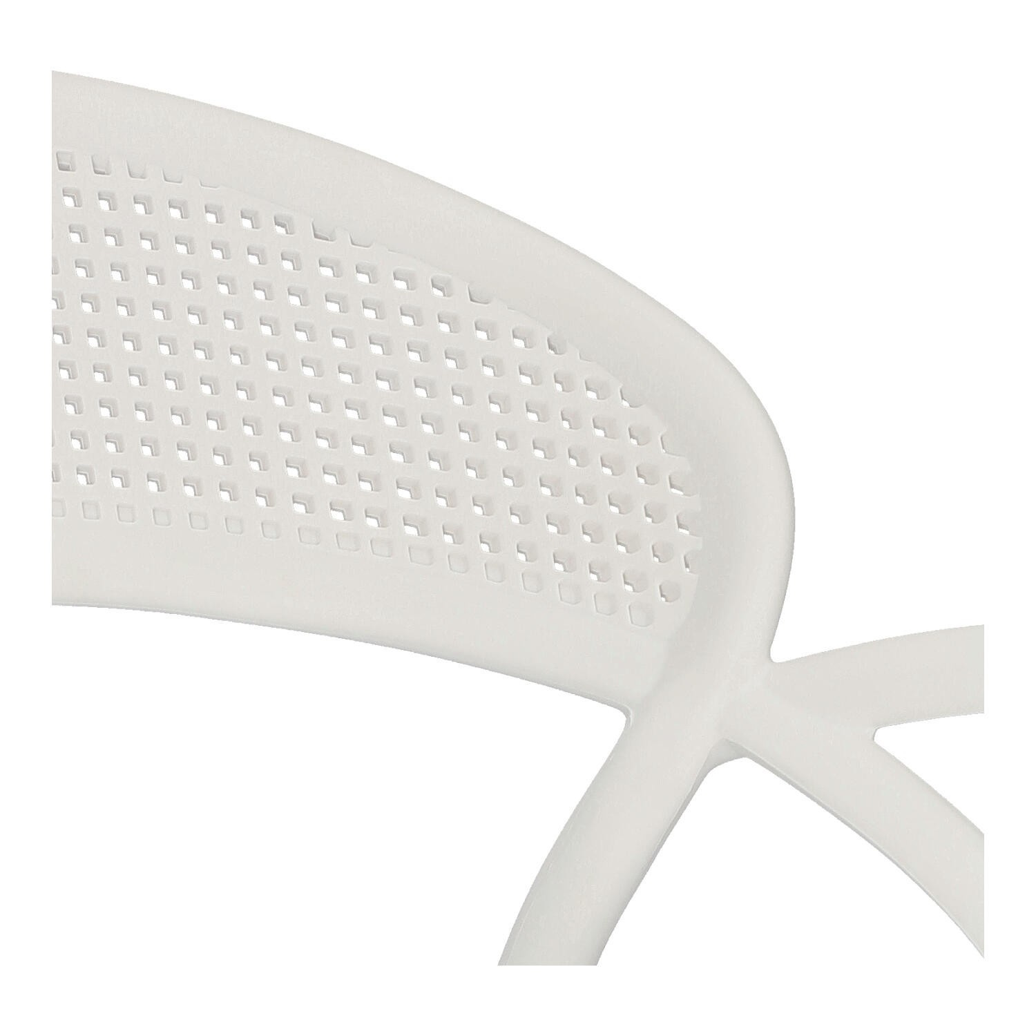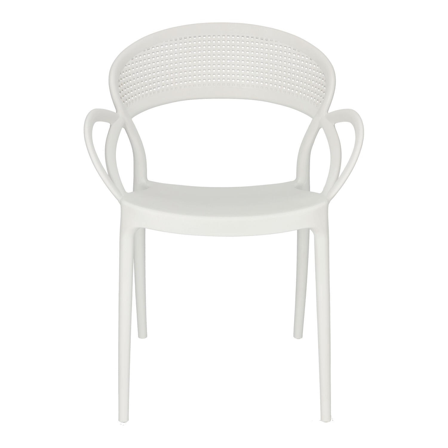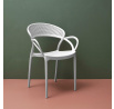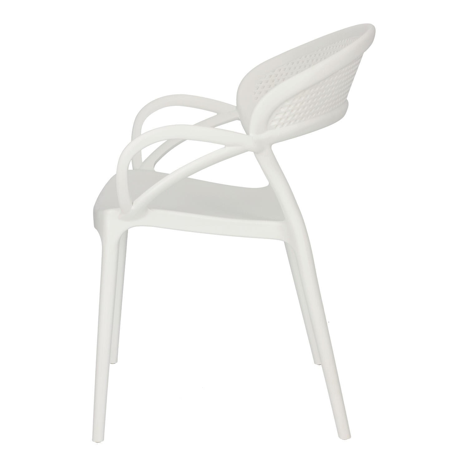 Bílá plastová židle Salmi je ideálním nábytkem na terasu nebo do zahrady. Židle se stohuje do 8 kusů na hromadu. Díky odolnému materiálu, ze kterého je vyrobeno, je křeslo vhodné pro venkovní použití.