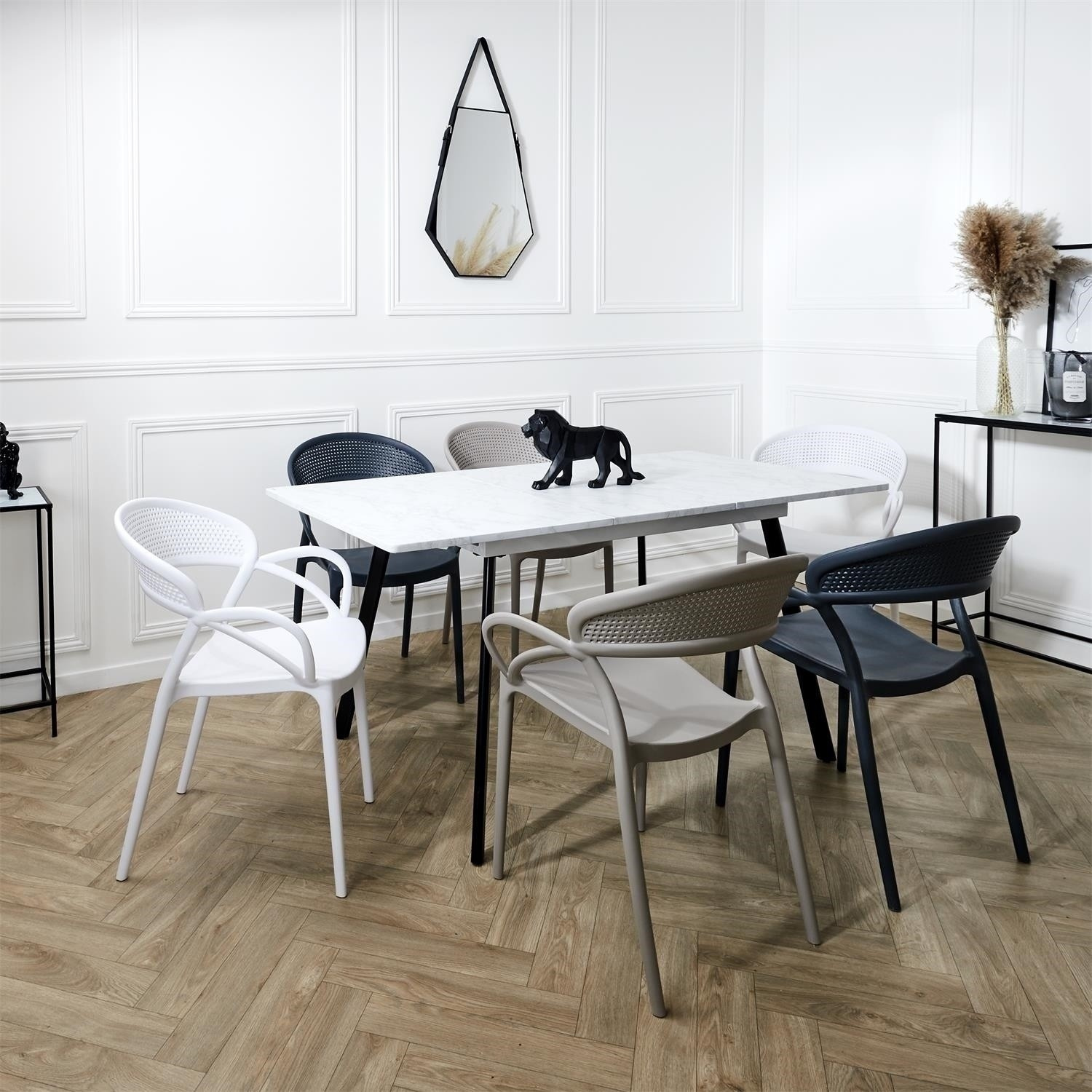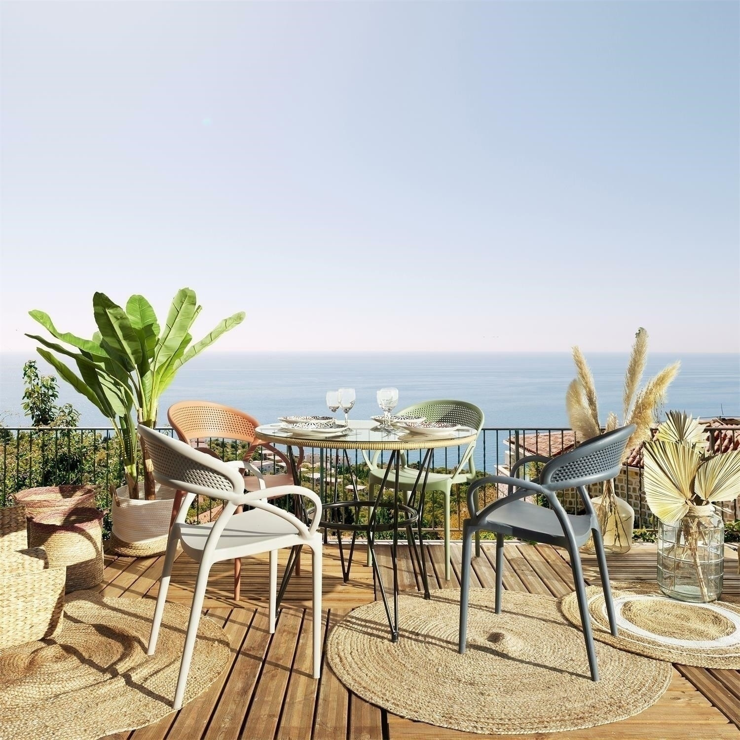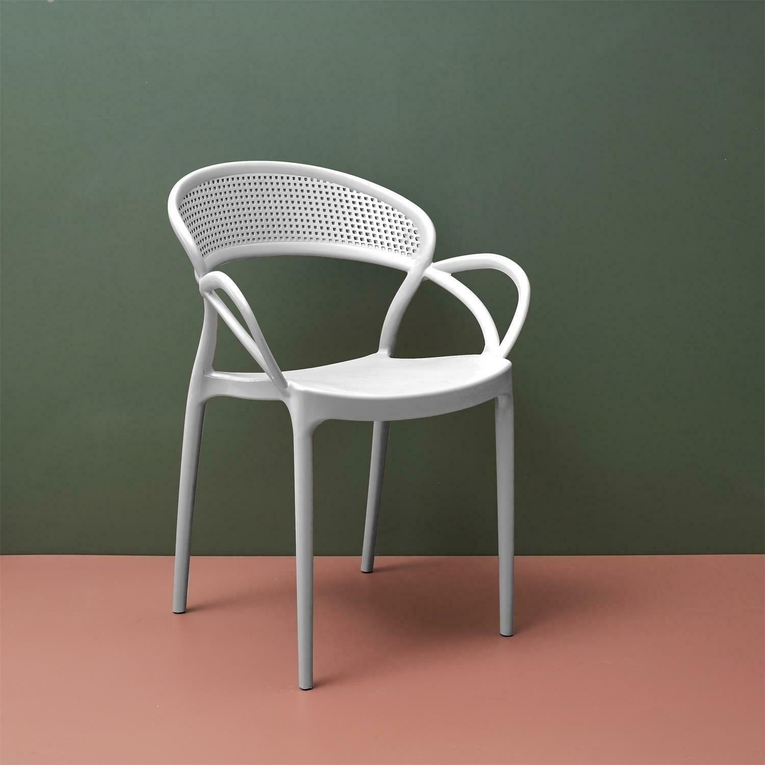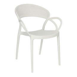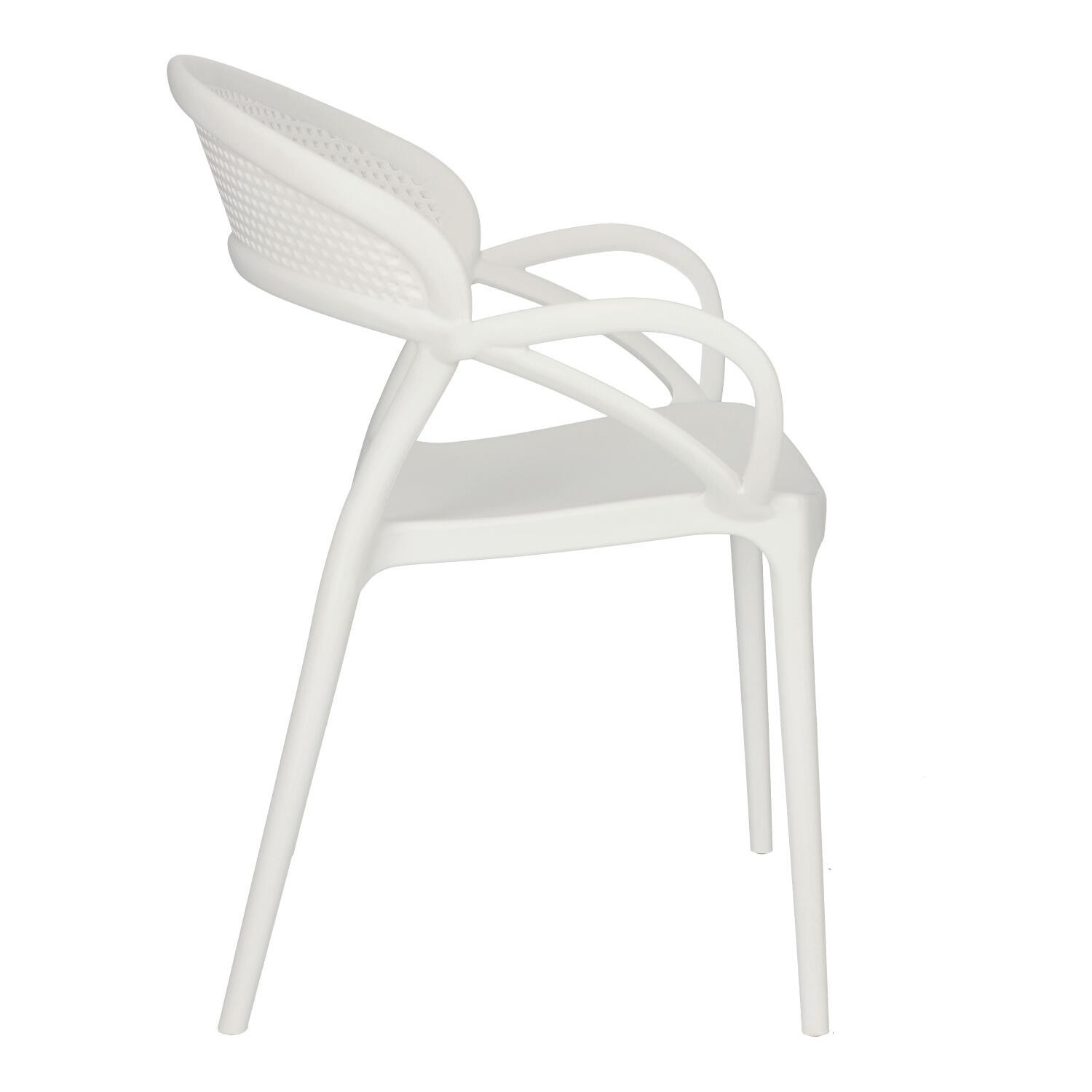 Bílá plastová židle Salmi je ideálním nábytkem na terasu nebo do zahrady. Židle se stohuje do 8 kusů na hromadu. Díky odolnému materiálu, ze kterého je vyrobeno, je křeslo vhodné pro venkovní použití.