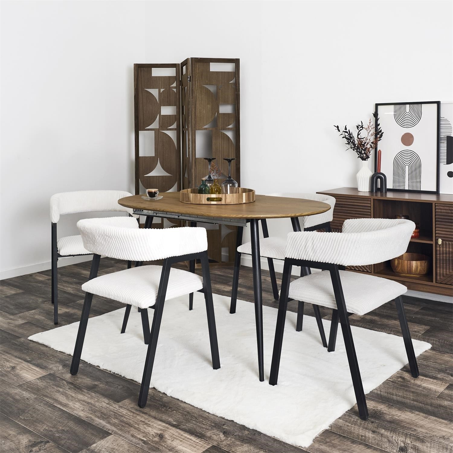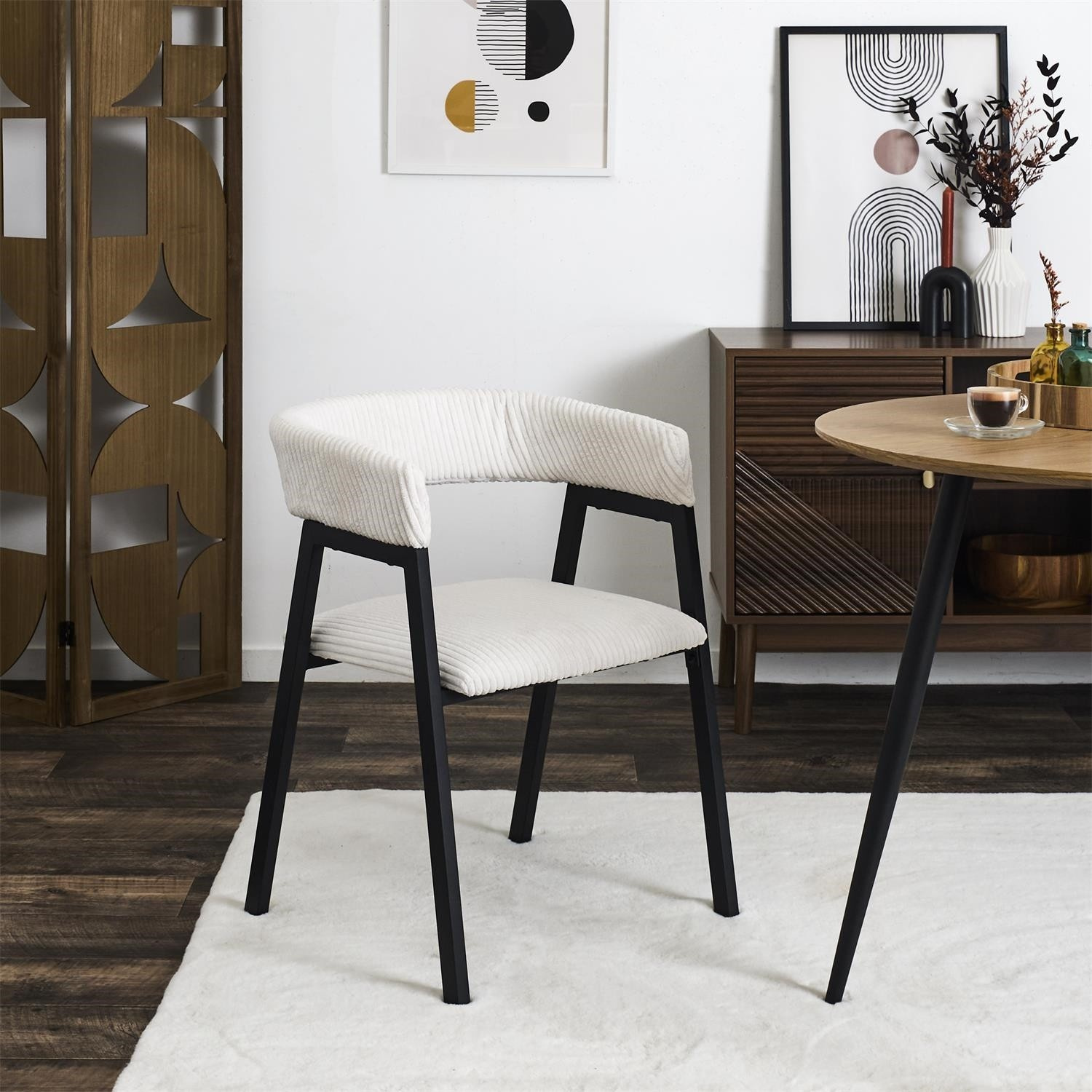 Křeslo Scott v manšestrovém, útulném čalounění není jen pohodlné křeslo do jídelny nebo obývacího pokoje. Minimalistická, jednoduchá forma nábytku zajišťuje, že je zároveň elegantní i nadčasový. Židle vyrobená z kovové základny a čalouněného sedáku a opěradla. Max. zatížení židle 110 kg. Vyžaduje montáž.