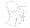 Rozměry: - šířka 61 cm - hloubka: 55 cm - celková výška: 78 cm - podrobné rozměry na poslední fotografii Materiál - čalounění: látka - nohy: kov lakovaný práškovou barvou Barva: - sedák: šedý - rám: černý
