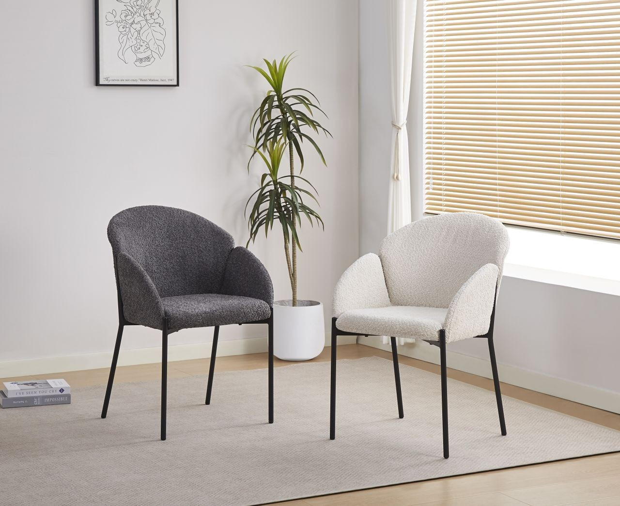 Rozměry: - šířka 61 cm - hloubka: 55 cm - celková výška: 78 cm - podrobné rozměry na poslední fotografii Materiál - čalounění: látka - nohy: kov lakovaný práškovou barvou Barva: - sedák: šedý - rám: černý
