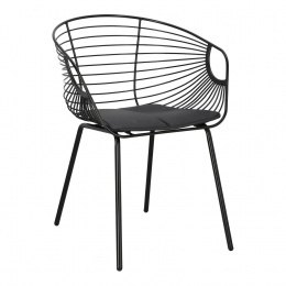 Kovová židle Sligo je moderní židle do interiéru ve stylu loft nebo industriálním. Židle s košíkovým sedákem bude ideálním nábytkem do jídelny nebo kuchyně. Křeslo s područkami je nejen pohodlné, ale také se vyznačuje zajímavým tvarem. Díky použití práškově lakovaného kovu je židle odolná vůči mechanickému poškození. Sedák židle byl vybaven polštářem z eko kůže. Hloubka sedáku: 42 cm Šířka sedáku: 44 cm