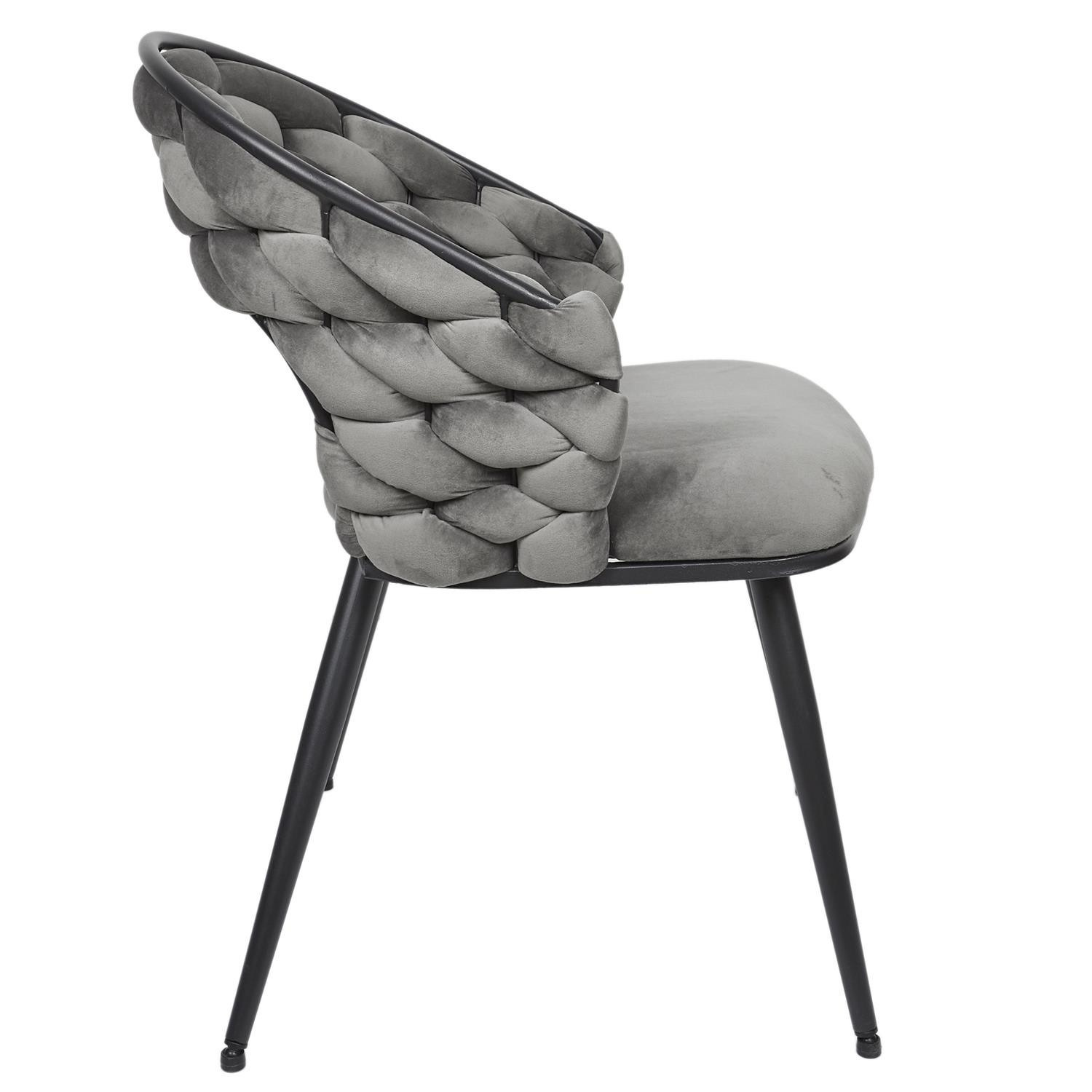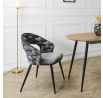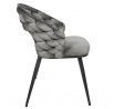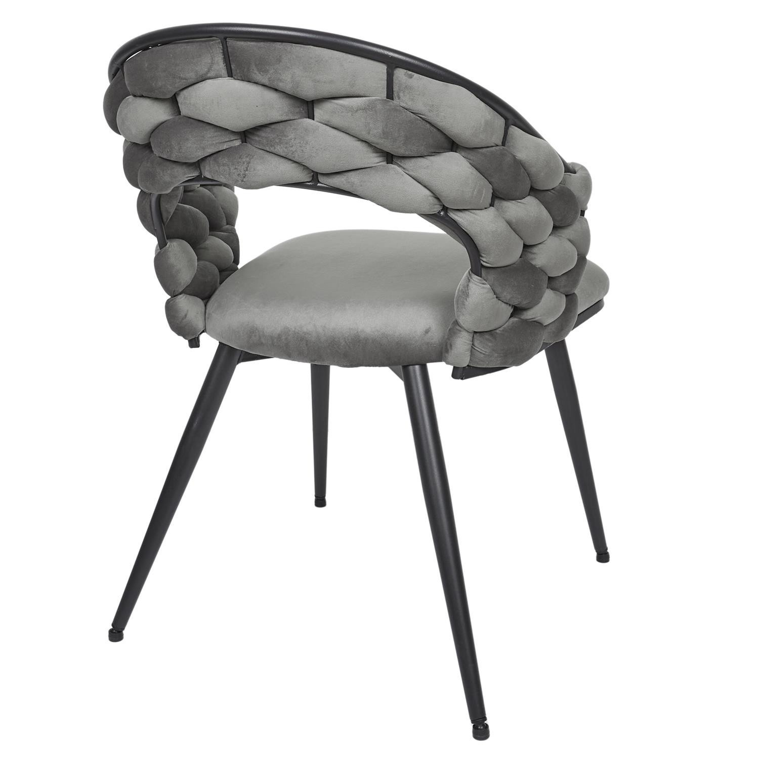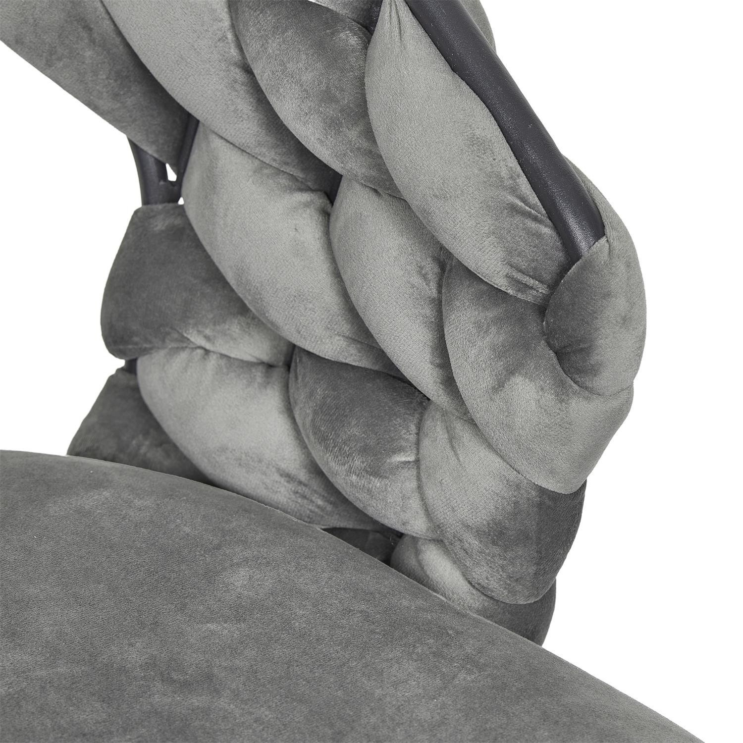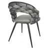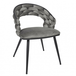Čalouněná židle s pleteným opěradlem je ideálním nábytkem do obývacího pokoje ve stylu glamour. Měkká, příjemná na dotek tkanina činí nábytek mimořádně pohodlným. Profilované opěradlo bylo vyrobeno z kovu a látky s pěnou, potažené látkou, která vypadá, jako by byla pletená. Sedák je z měkké čalounické pěny. Podstavec židle byl vyroben z kovu. Vyžaduje montáž Max. zatížení 110 kg