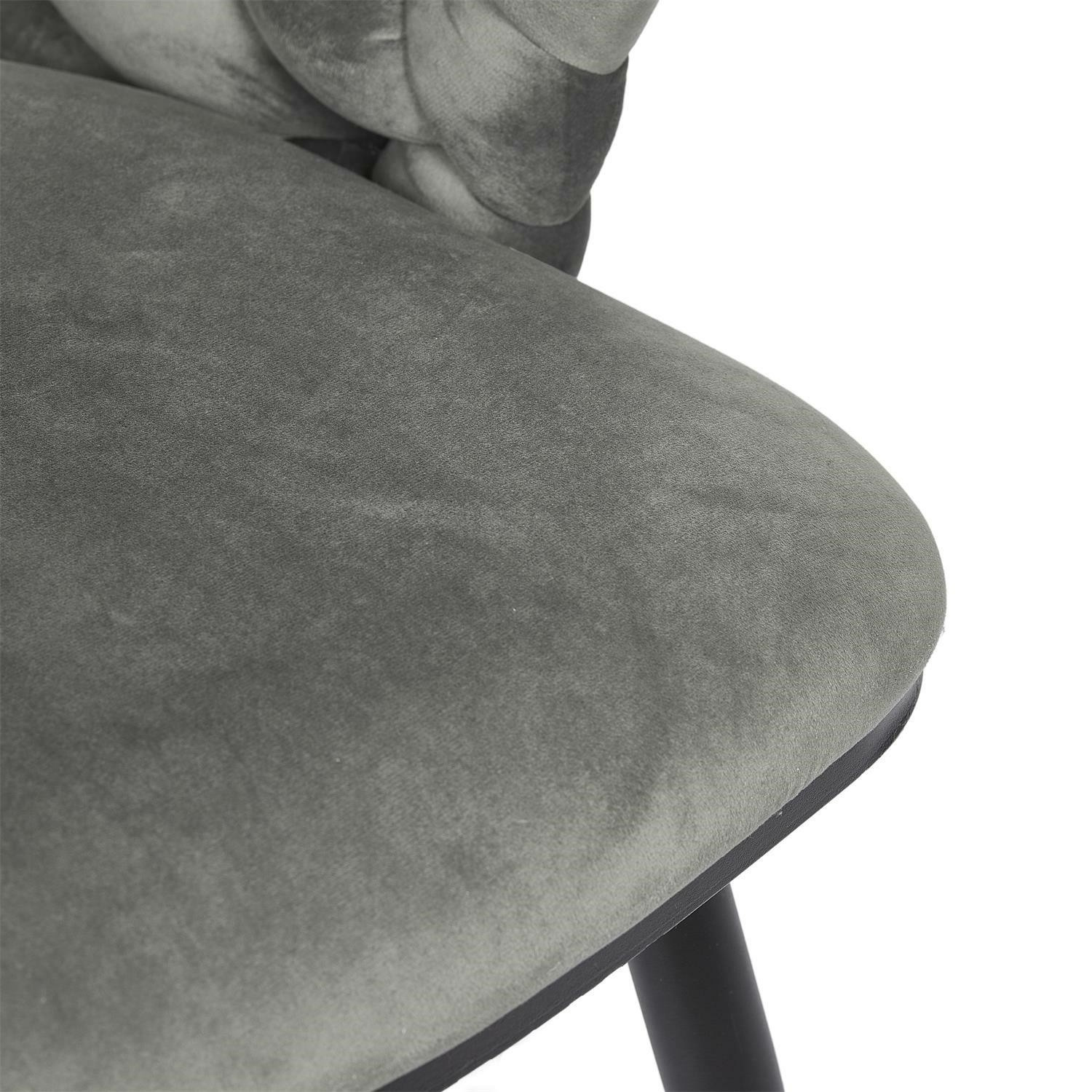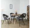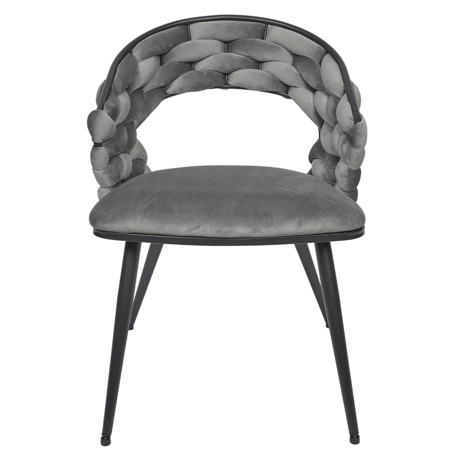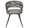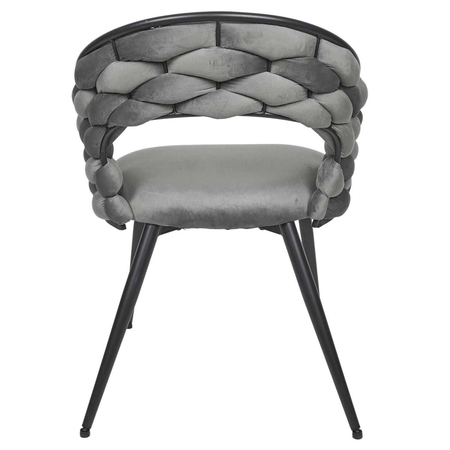 Čalouněná židle s pleteným opěradlem je ideálním nábytkem do obývacího pokoje ve stylu glamour. Měkká, příjemná na dotek tkanina činí nábytek mimořádně pohodlným. Profilované opěradlo bylo vyrobeno z kovu a látky s pěnou, potažené látkou, která vypadá, jako by byla pletená. Sedák je z měkké čalounické pěny. Podstavec židle byl vyroben z kovu. Vyžaduje montáž Max. zatížení 110 kg