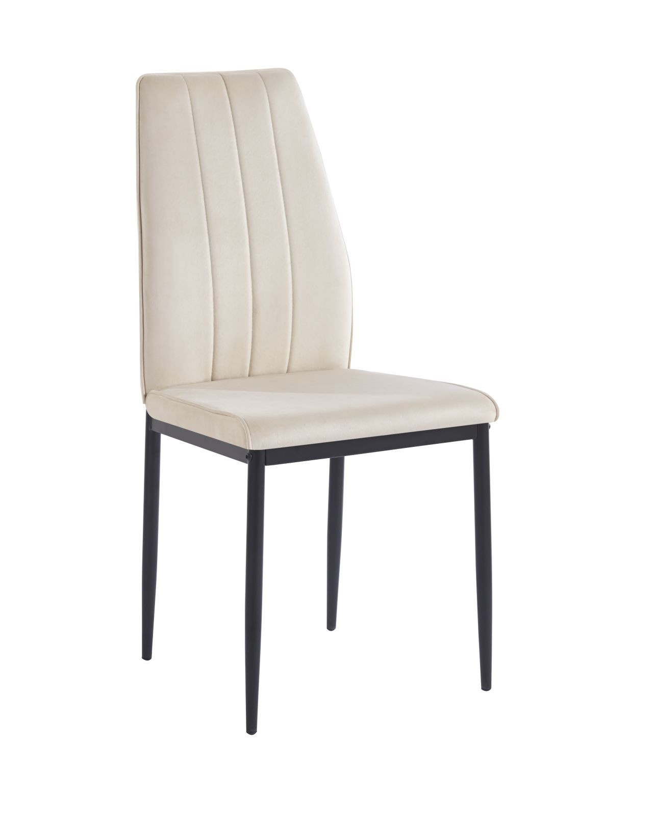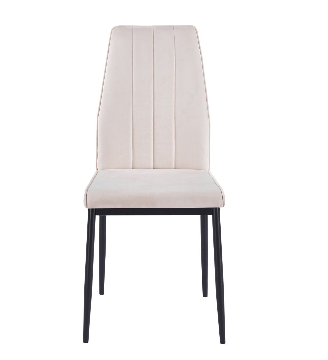 Rozměry: - šířka sedáku: 44 cm - výška sedáku: 47 cm - celková výška: 93 cm - hloubka sedáku: 39 cm Materiál - čalounění: samet - konstrukce: kov lakovaný práškovou barvou Barva: - sedák: béžový - konstrukce: černá