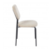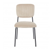 Rozměry: - šířka sedáku: 45 cm - výška sedáku: 48 cm - celková výška: 85 cm - hloubka sedáku: 54 cm Materiál: - čalounění: samet - nohy: kov lakovaný práškovou barvou Barva: - sedák + opěradlo: béžová - nohy: černá Ostatní: - židle stohovatelné