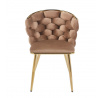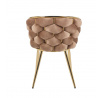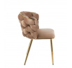 Rozměry: - šířka sedáku: 47 cm - celková šířka: 57 cm - výška sedáku: 49 cm - celková výška: 78 cm - hloubka sedáku: 42 cm Materiál - čalounění: samet - konstrukce: chrom Barva: - sedák: cappuccino - konstrukce: zlatá