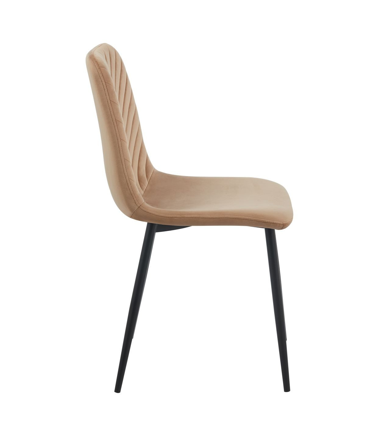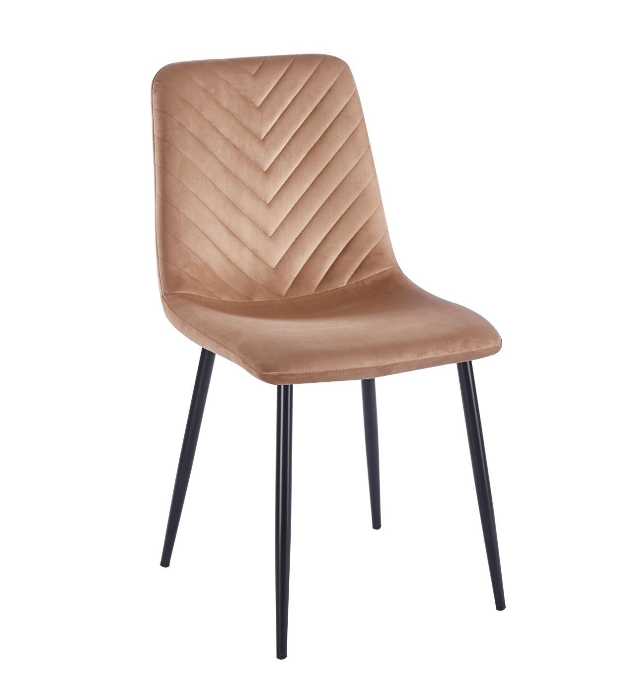 Rozměry: - šířka sedáku: 44 cm - výška sedáku: 49 cm - celková výška: 87 cm - hloubka sedáku: 40 cm Materiál - čalounění: samet - nohy: kov lakovaný práškovou barvou Barva: - sedák: cappuccino - nohy: černé