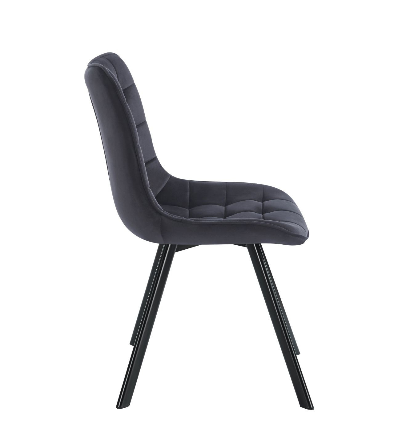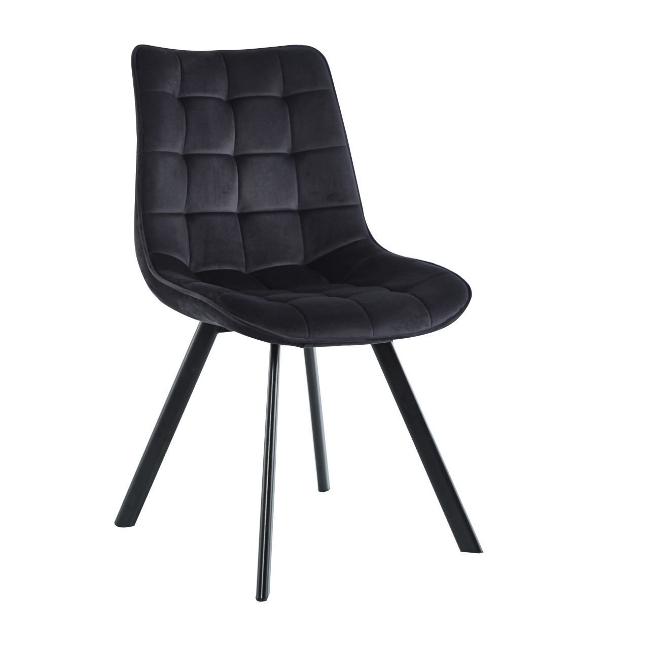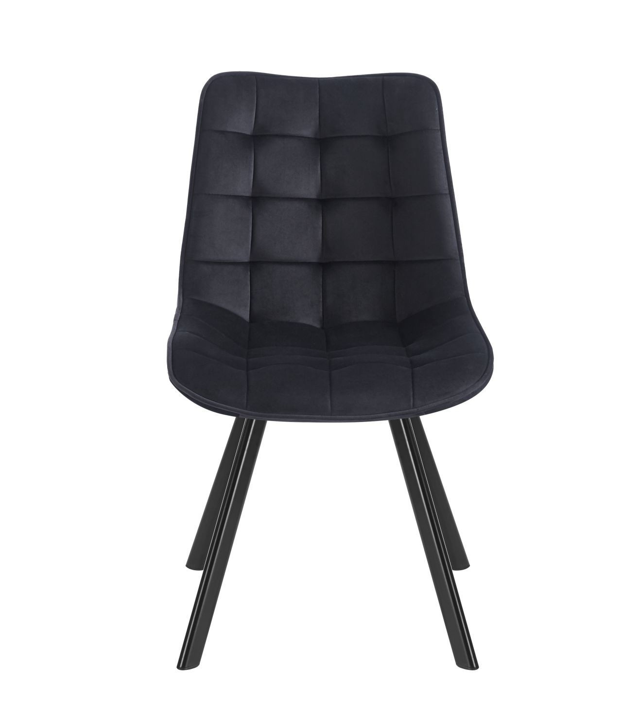 Rozměry: - šířka sedáku: 46 cm - výška sedáku: 48 cm - celková výška: 84 cm - hloubka sedáku: 42 cm Materiál - čalounění: samet - nohy: kov lakovaný práškovou barvou Barva: - sedák: černý - nohy: černé