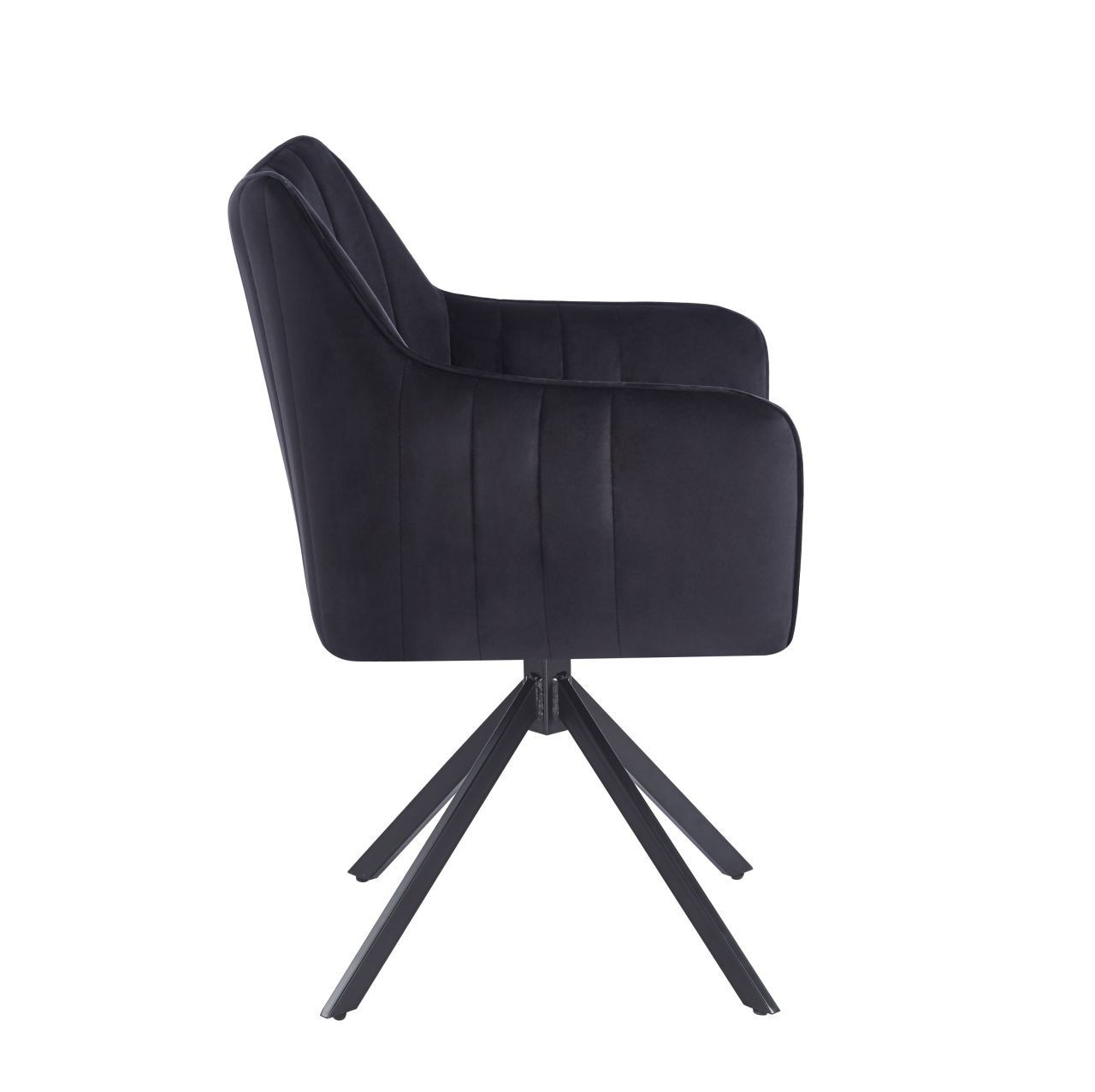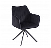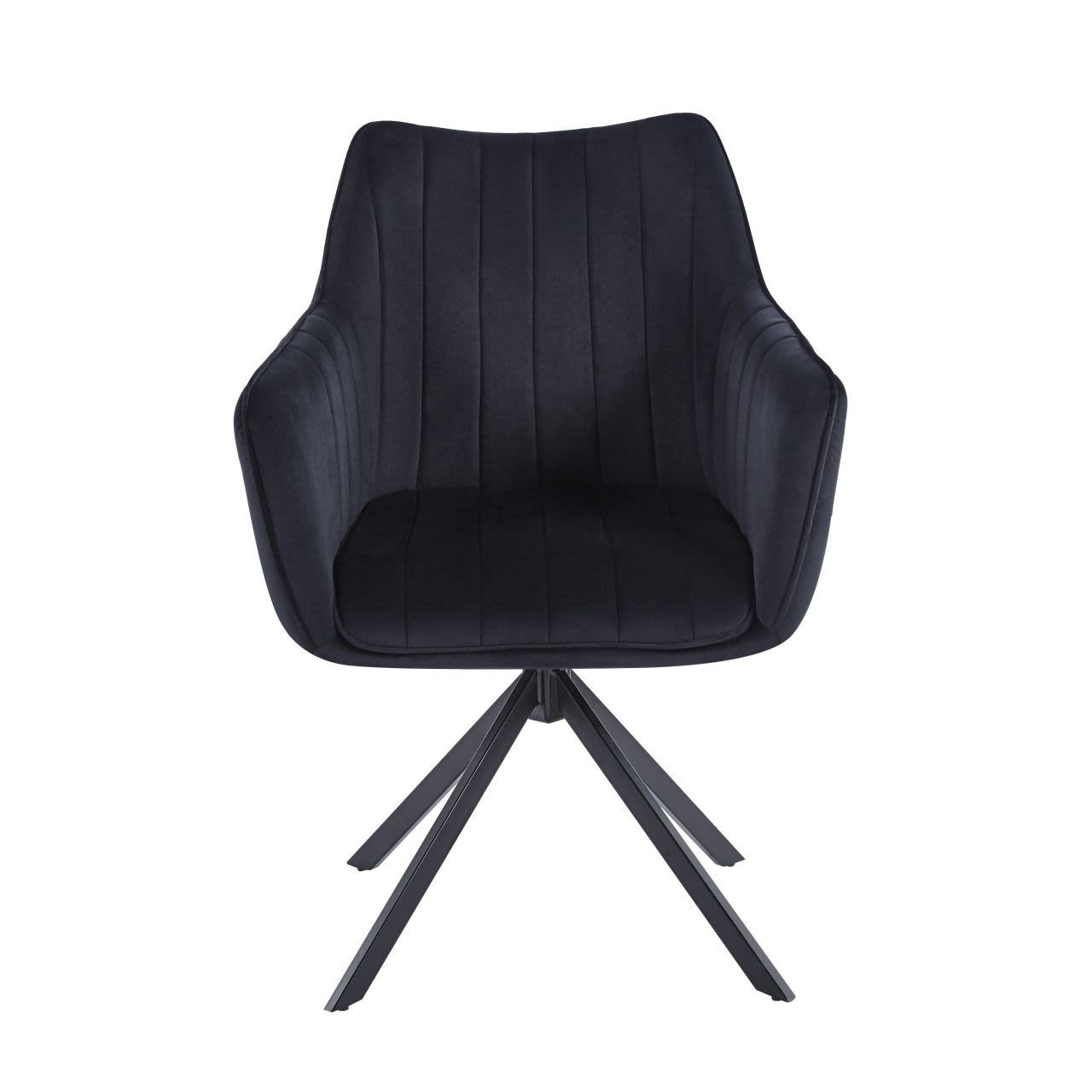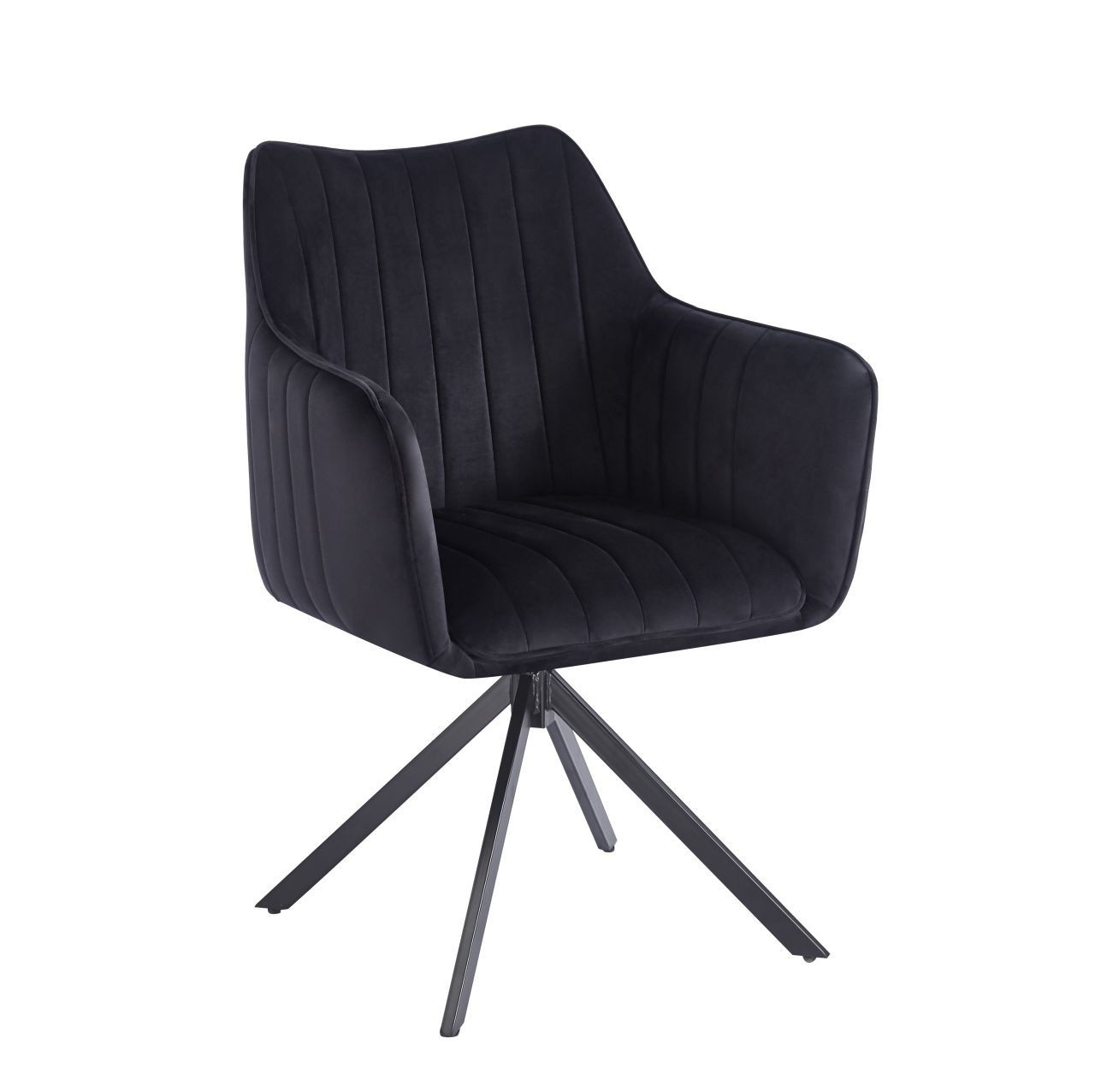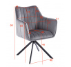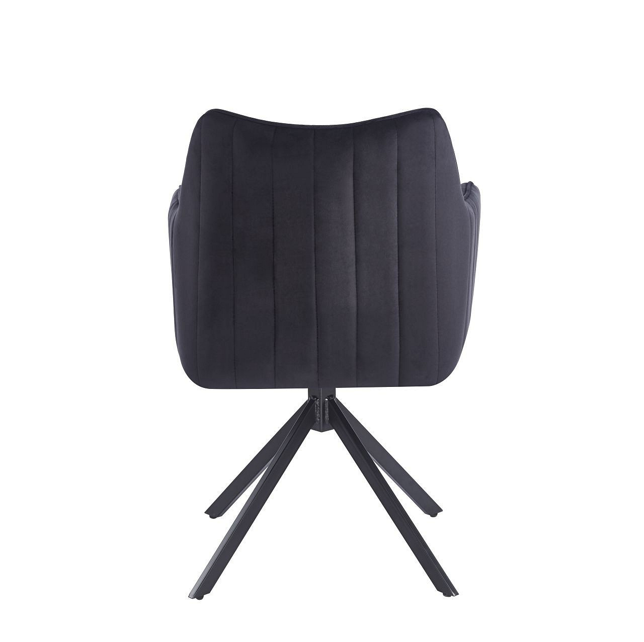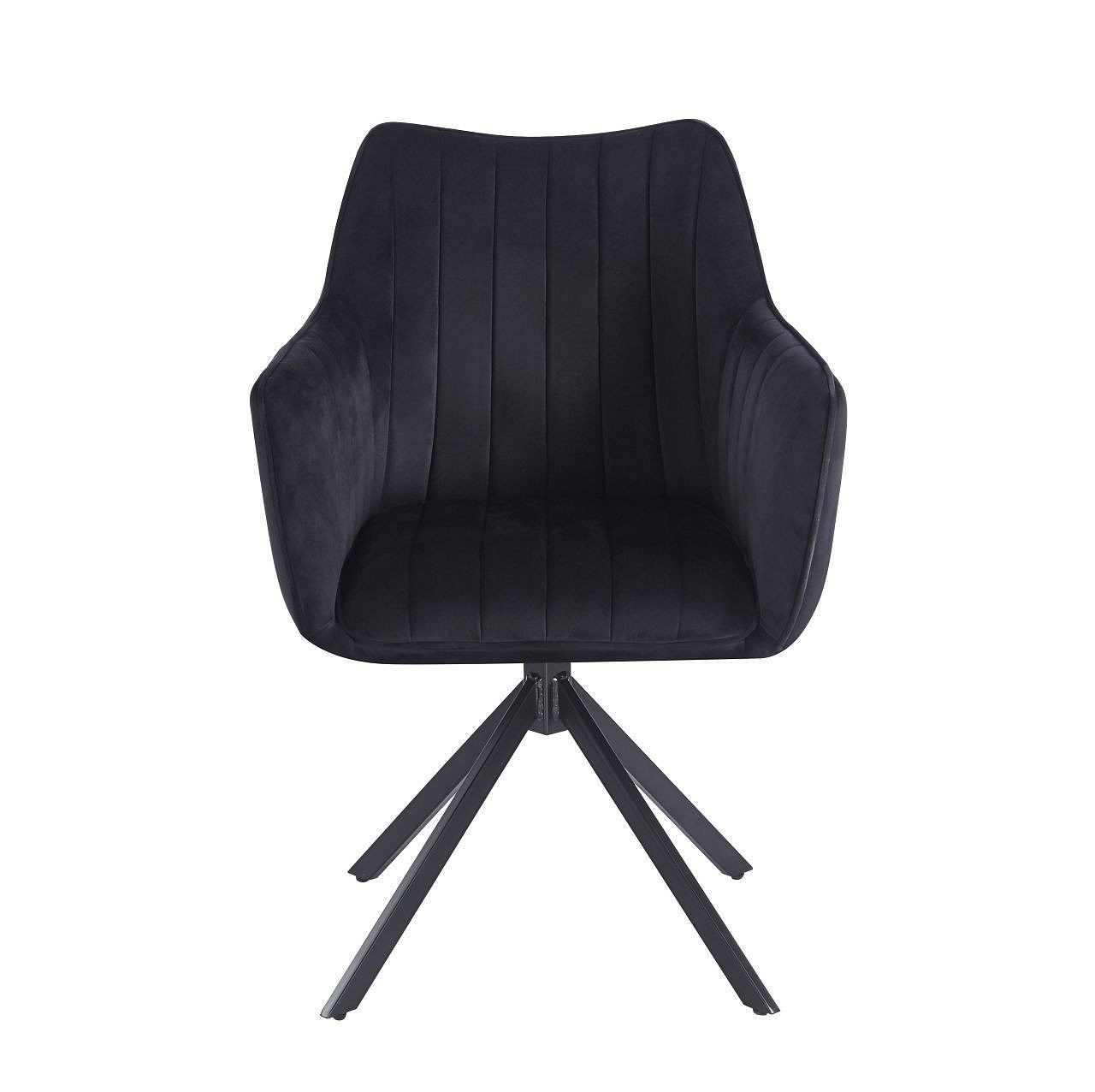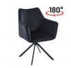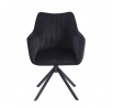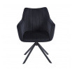 Židle má sedadlo otočné v rozsahu 180 stupňů s funkcí návratu do výchozí polohy.Rozměry: - celková šířka: 61 cm - šířka sedáku: 44 cm - výška sedáku: 45 cm - celková výška: 88 cm - hloubka sedáku: 45 cm Materiál - čalounění: samet - rám: kov lakovaný práškovou barvou Barva: - sedák: černý - rám: černý