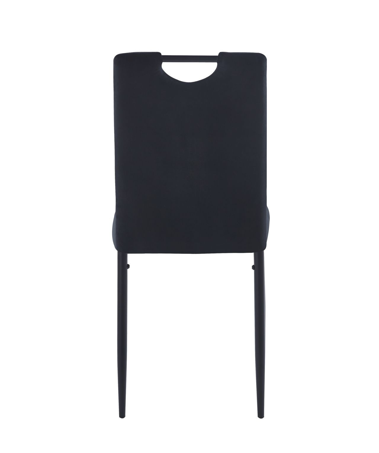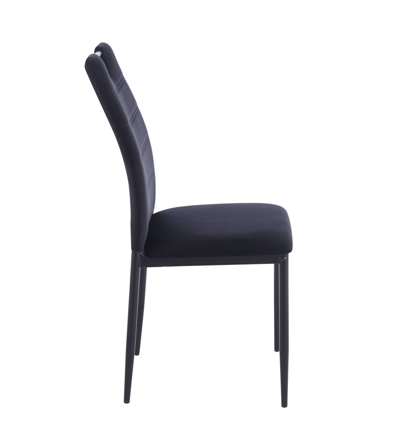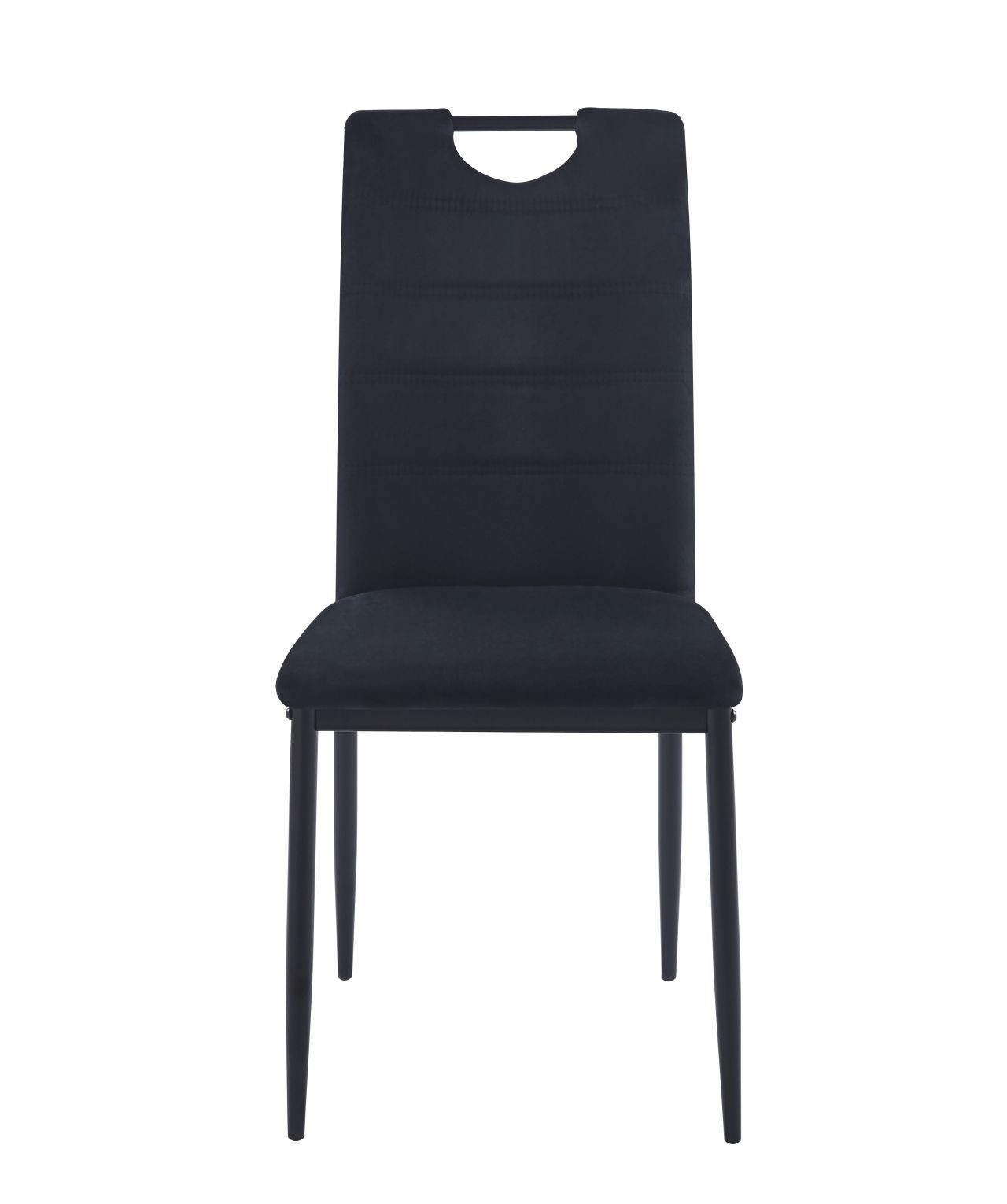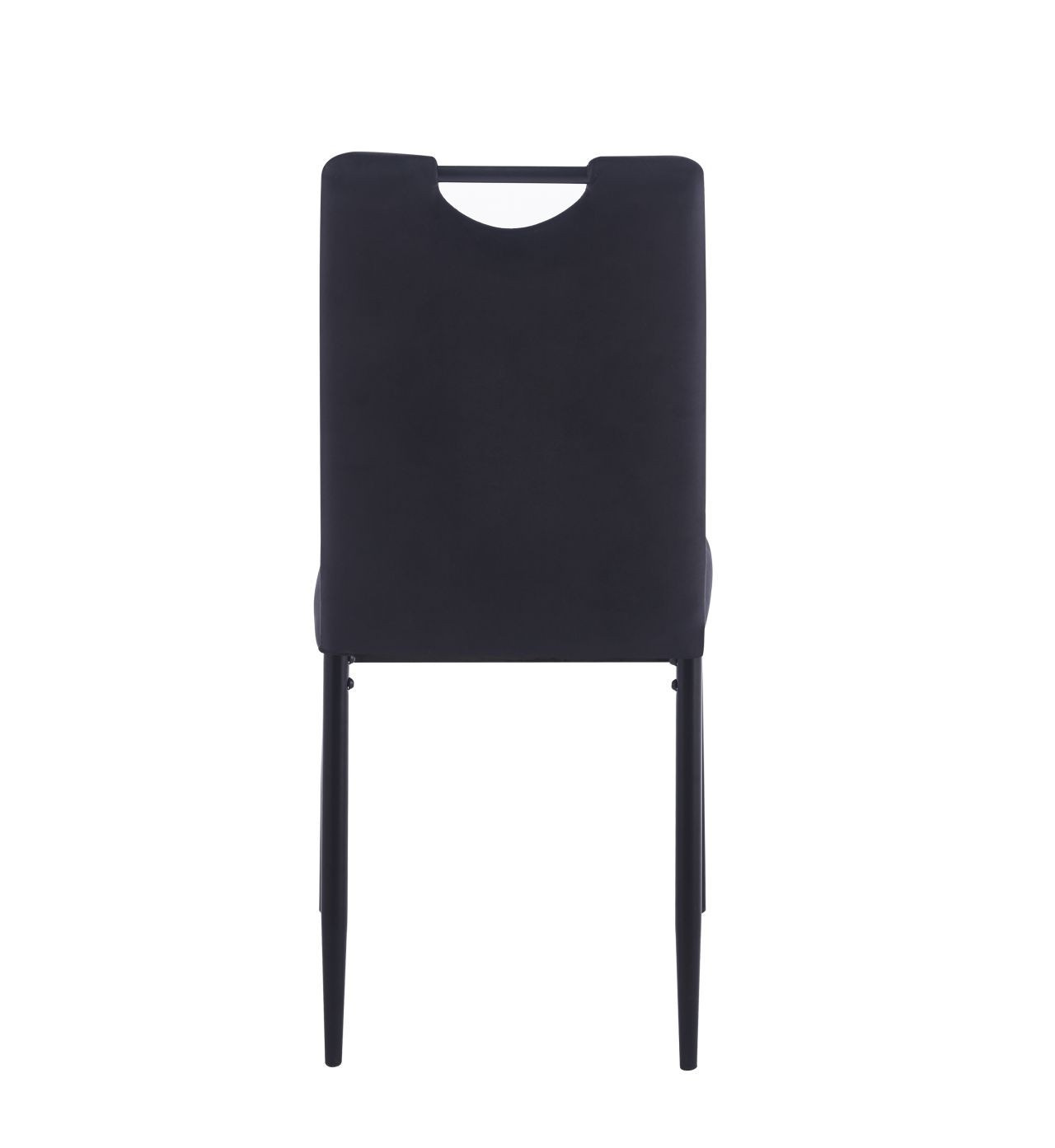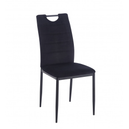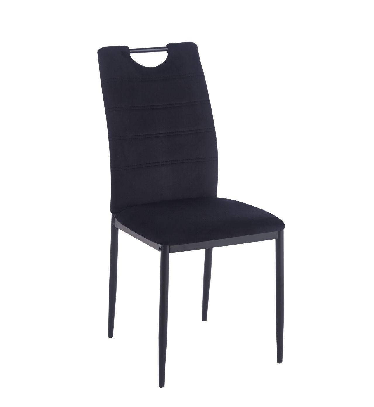 Rozměry: - šířka sedáku: 43 cm - výška sedáku: 48 cm - celková výška: 92 cm - hloubka sedáku: 38 cm Materiál - čalounění: samet - rám: kov lakovaný práškovou barvou Barva: - sedák: černý - rám: černý