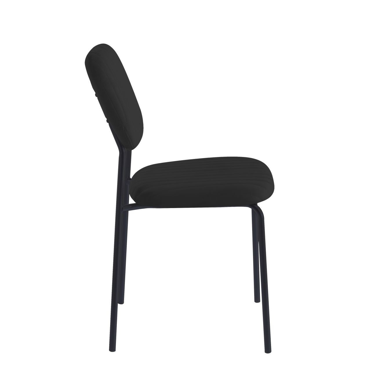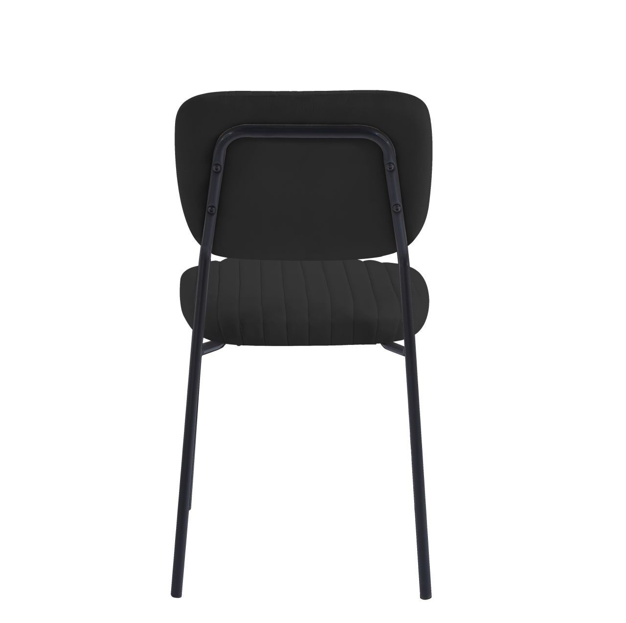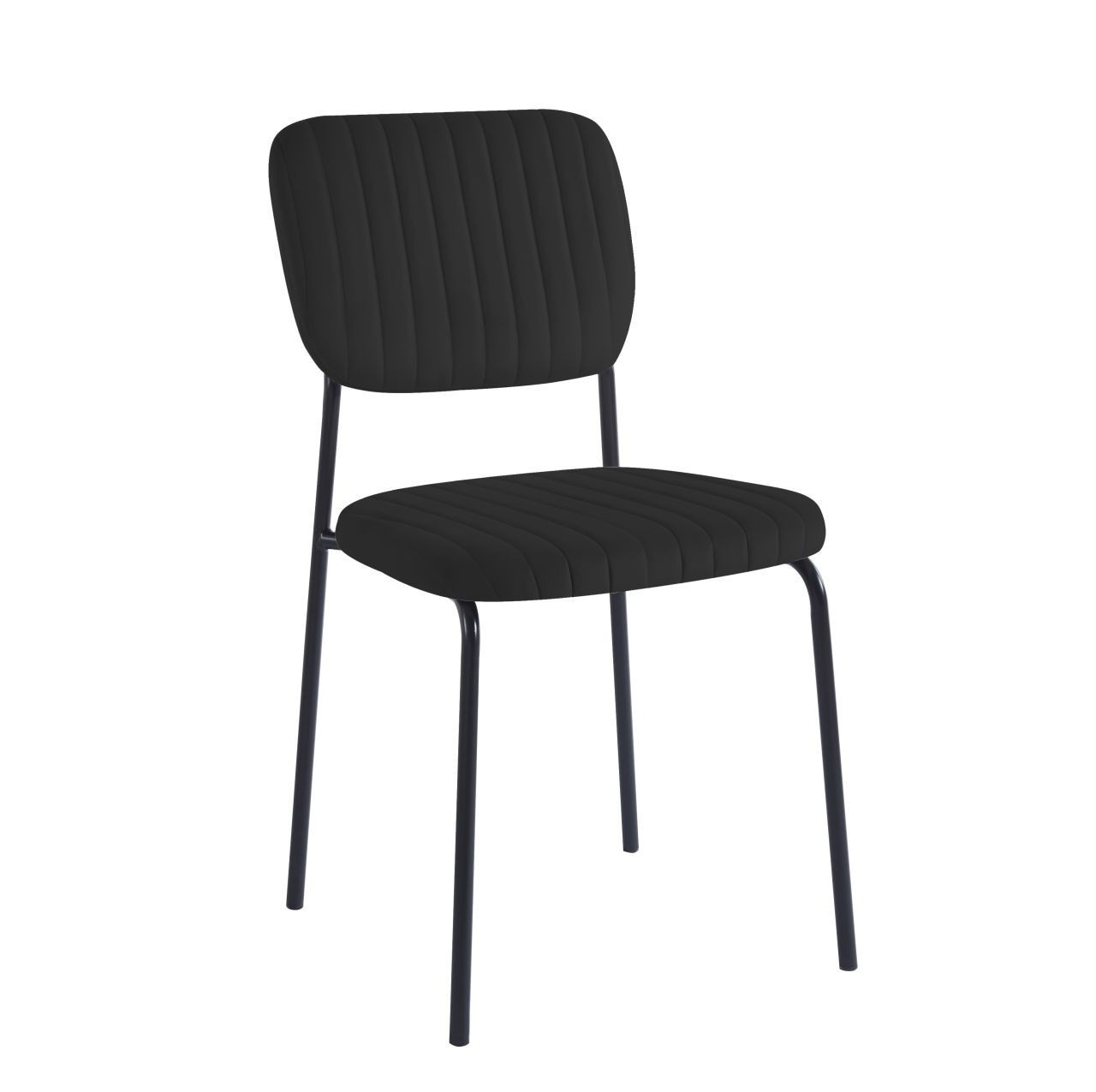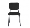 Rozměry: - šířka sedáku: 45 cm - výška sedáku: 48 cm - celková výška: 85 cm - hloubka sedáku: 54 cm Materiál: - čalounění: samet - nohy: kov lakovaný práškovou barvou Barva: - sedák + opěradlo: černá - nohy: černá Ostatní: - židle stohovatelné