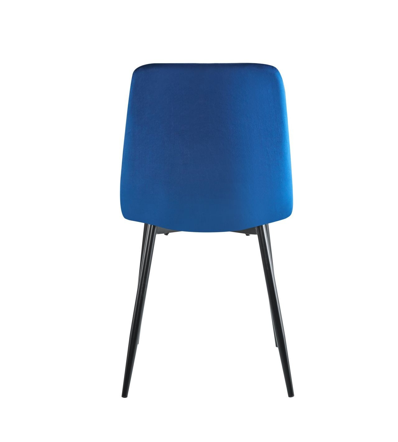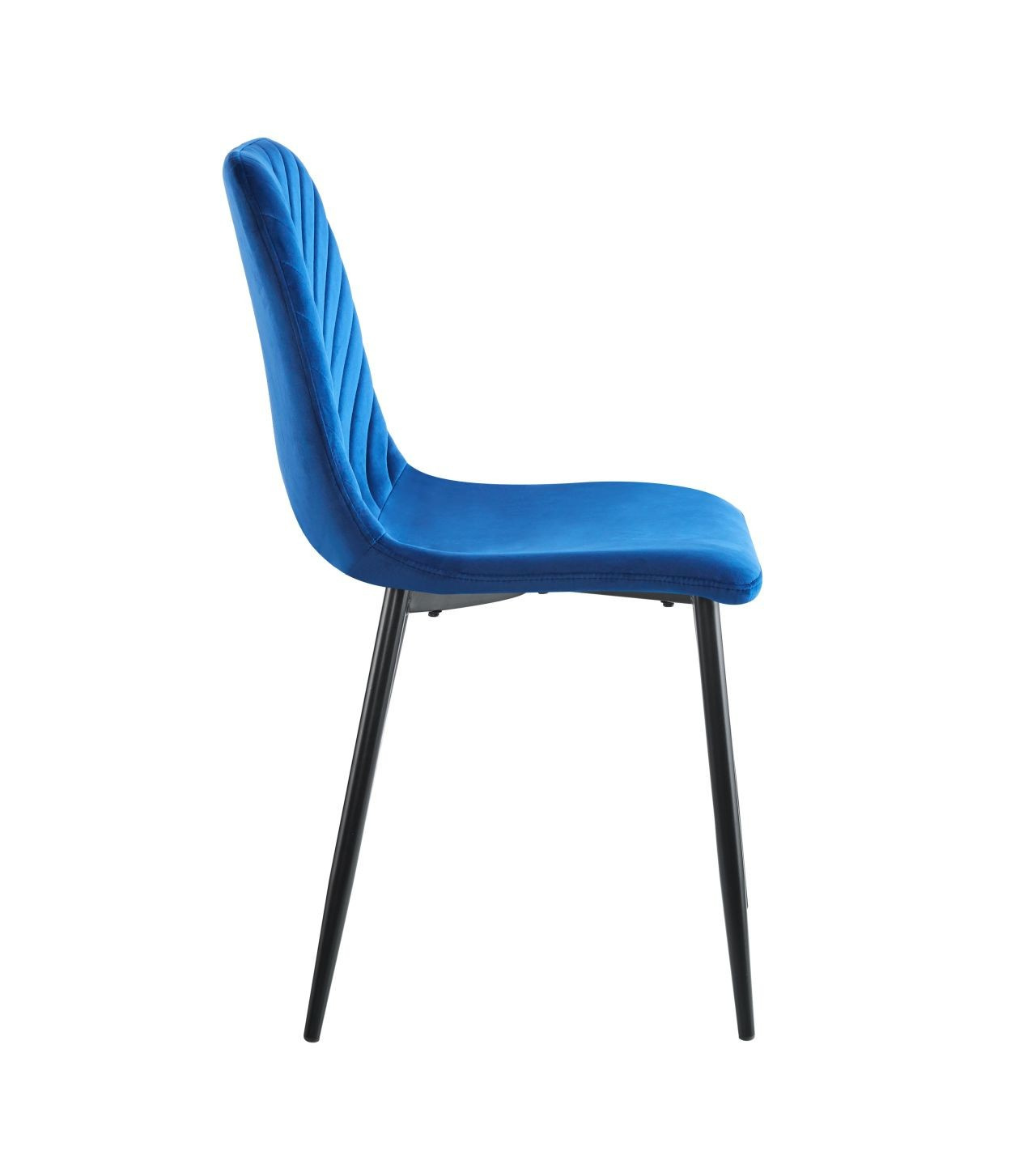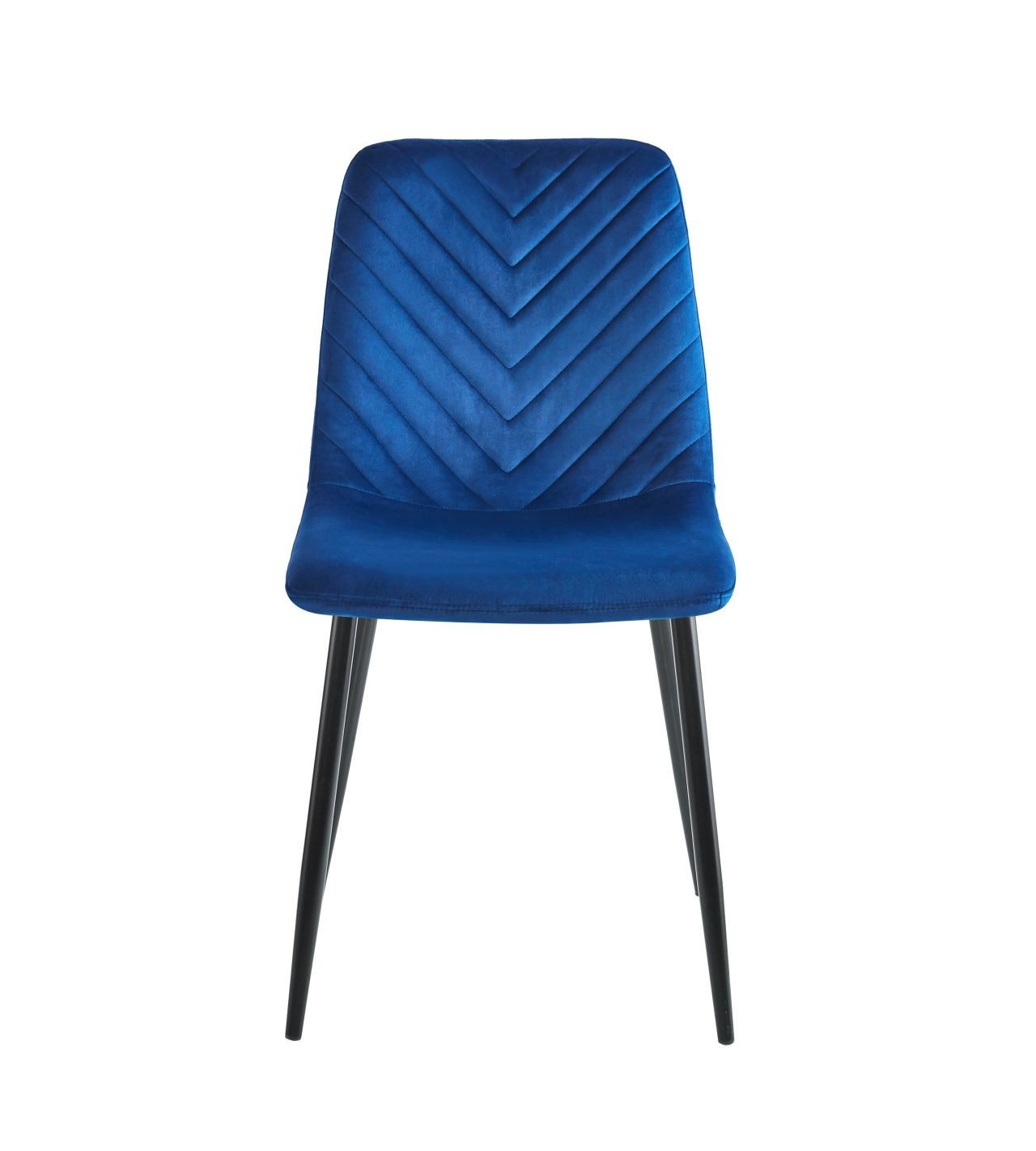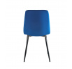 Rozměry: - šířka sedáku: 44 cm - výška sedáku: 49 cm - celková výška: 87 cm - hloubka sedáku: 40 cm Materiál - čalounění: samet - nohy: kov lakovaný práškovou barvou Barva: - sedák: modrý - nohy: černé