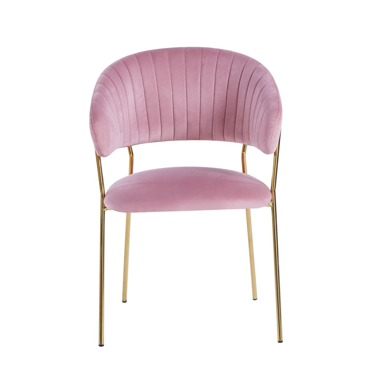 Rozměry: - výška židle: 84,5 cm - výška sedáku: 47-48 cm - výška mezery mezi sedákem a opěradlem: 9 cm - šířka sedáku: 50 cm - šířka židle: 57 cm - hloubka sedáku: 48 cm - hloubka židle: 55 cm Materiál: - čalounění: samet - nohy: chrom Barva: - sedák + opěradlo: růžová - konstrukce: zlatá