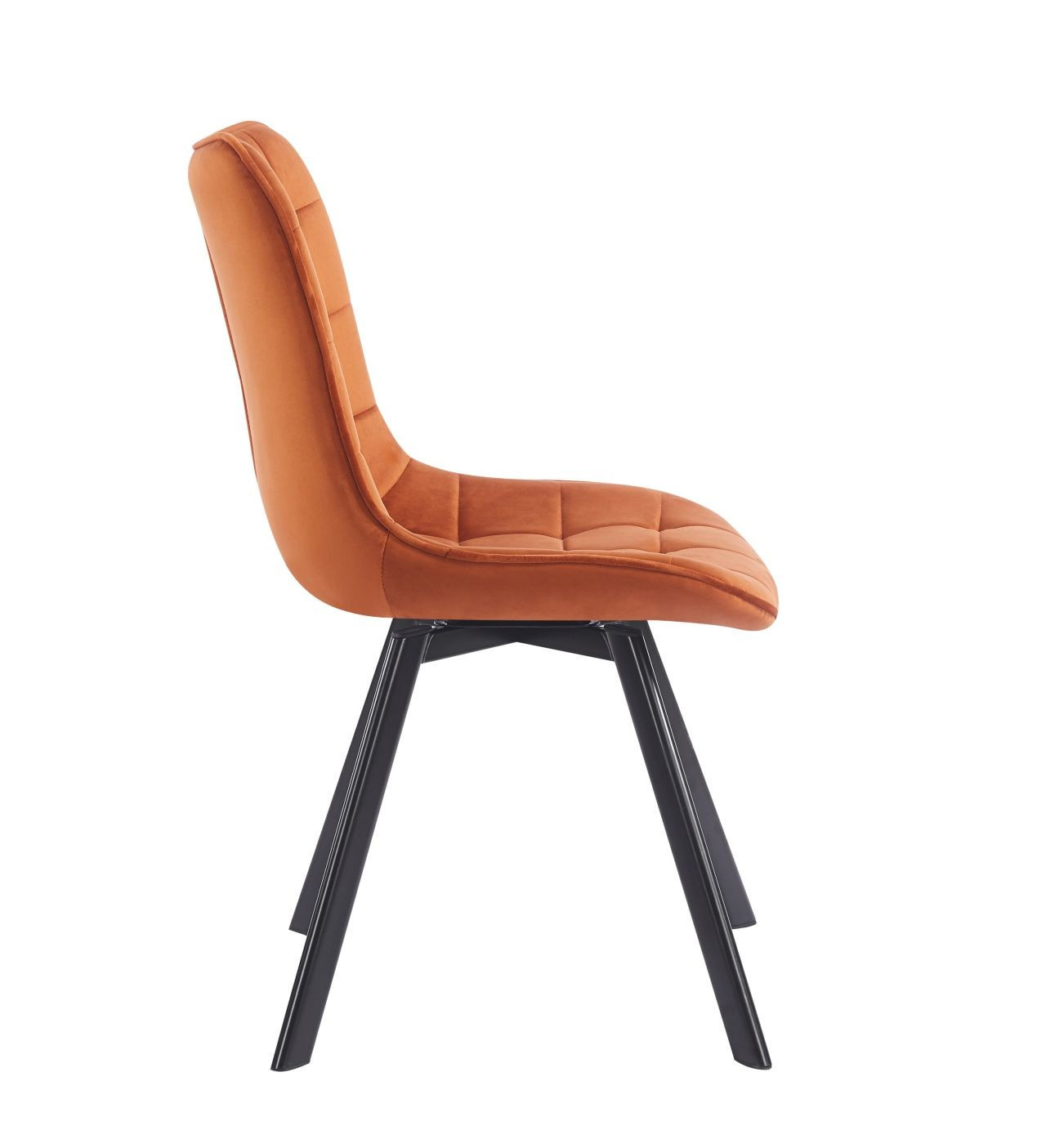 Židle má sedadlo otočné v rozsahu 180 stupňů s funkcí návratu do výchozí polohy.Rozměry: - šířka sedáku: 50 cm - výška sedáku: 47 cm - celková výška: 86 cm - hloubka sedáku: 42 cm Materiál - čalounění: samet - nohy: kov lakovaný práškovou barvou Barva: - sedák: skořicová - nohy: černé