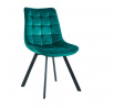 Rozměry: - šířka sedáku: 46 cm - výška sedáku: 48 cm - celková výška: 84 cm - hloubka sedáku: 42 cm Materiál - čalounění: samet - nohy: kov lakovaný práškovou barvou Barva: - sedák: zelený - nohy: černé