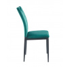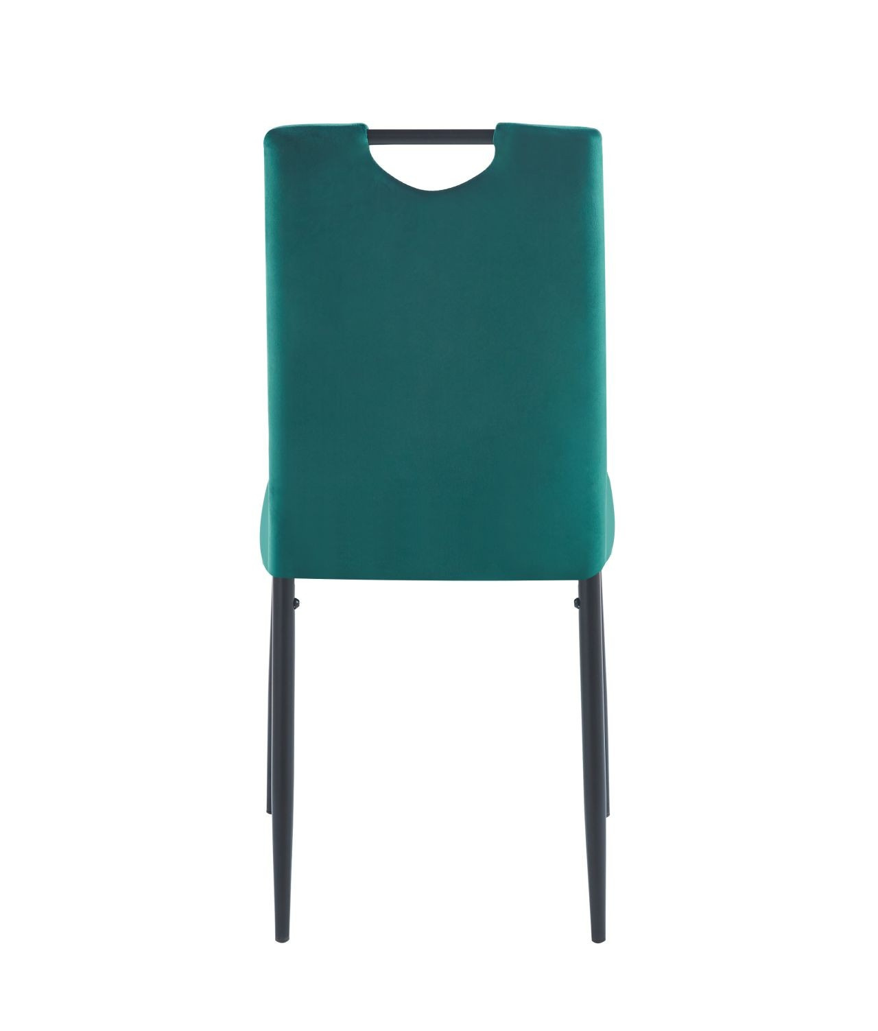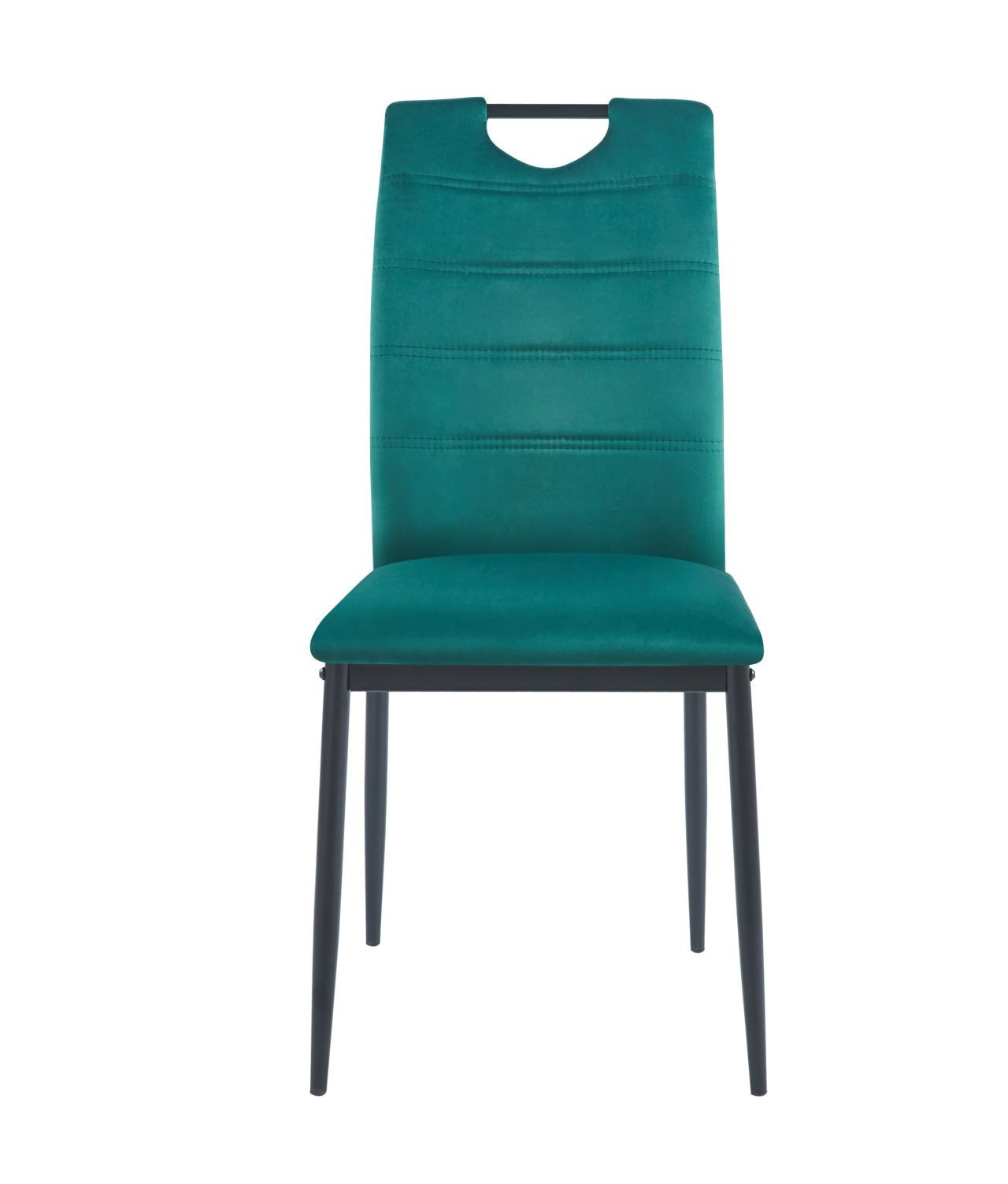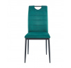 Rozměry: - šířka sedáku: 43 cm - výška sedáku: 48 cm - celková výška: 92 cm - hloubka sedáku: 38 cm Materiál - čalounění: samet - rám: kov lakovaný práškovou barvou Barva: - sedák: zelený - rám: černý