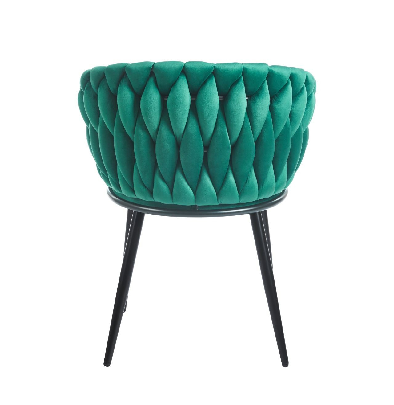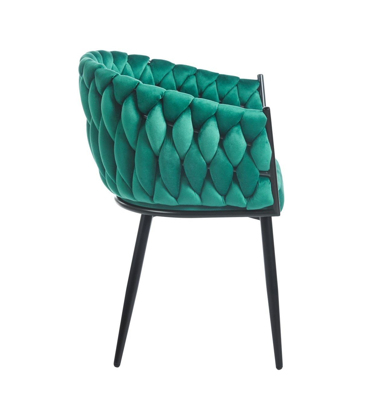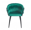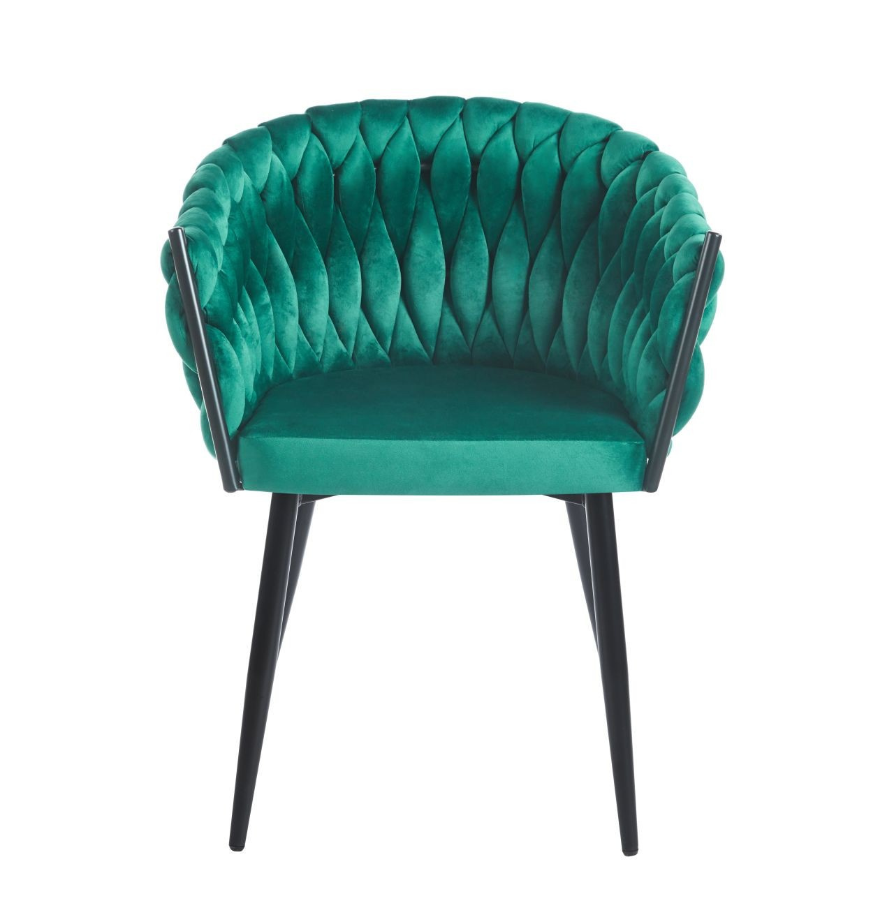 Rozměry: - šířka sedáku: 49 cm - celková šířka: 60 cm - výška sedáku: 42 cm - celková výška: 81 cm - hloubka sedáku: 43,5 cm Materiál - čalounění: samet - konstrukce: kov s práškovým nástřikem Barva: - sedák: zelený - konstrukce: černá