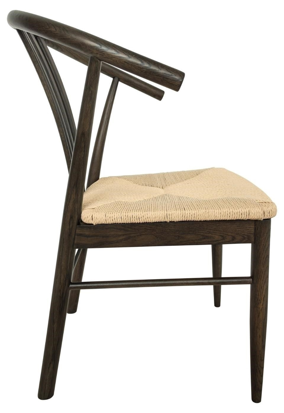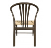 Židle do jídelny York s područkami je elegantní kus nábytku s moderním designem, který kombinuje bílé papírové pletení s přírodním dřevem. Opěradlo a sedák vyrobené z pletenin dodávají židli lehký, řemeslný charakter. Konstrukce židle je založena na pevné základně z matného dubu, lakovaného do kouřového odstínu (NC), což jí dodává teplý a útulný vzhled. Područky a obloukový tvar opěradla zajišťují nejen pohodlí, ale také elegantní, obálkový vzor, který vnáší do interiéru jemný, ale moderní prvek. Maximální nosnost 110 kg Výška: 83 cm Šířka: 54 cm Délka: 54 cm