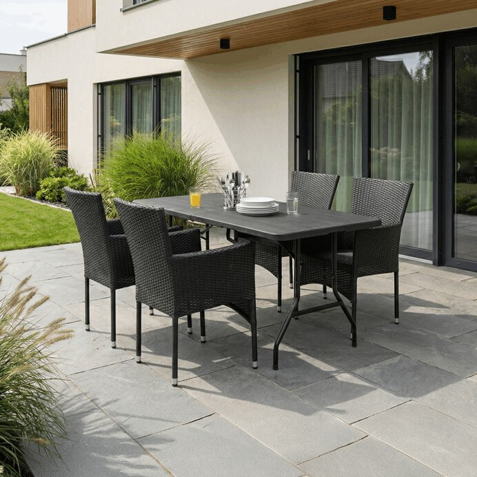 Stylová zahradní židle značky Autronic v elegantním černém provedení přináší dokonalou kombinaci komfortu a moderního designu. Výplet z kvalitního polyratanu je odolný vůči povětrnostním vlivům, což zajišťuje dlouhou životnost i při venkovním používání. Stabilní kovová konstrukce poskytuje pevnost a bezpečnost, zatímco tvarované opěrky rukou zvyšují pohodlí při sezení. Tato židle se skvěle hodí na zahradu, terasu nebo k bazénu, ale své místo najde i v kavárnách či bistrech. Vsaďte na kvalitu a styl, který tato židle nabízí.