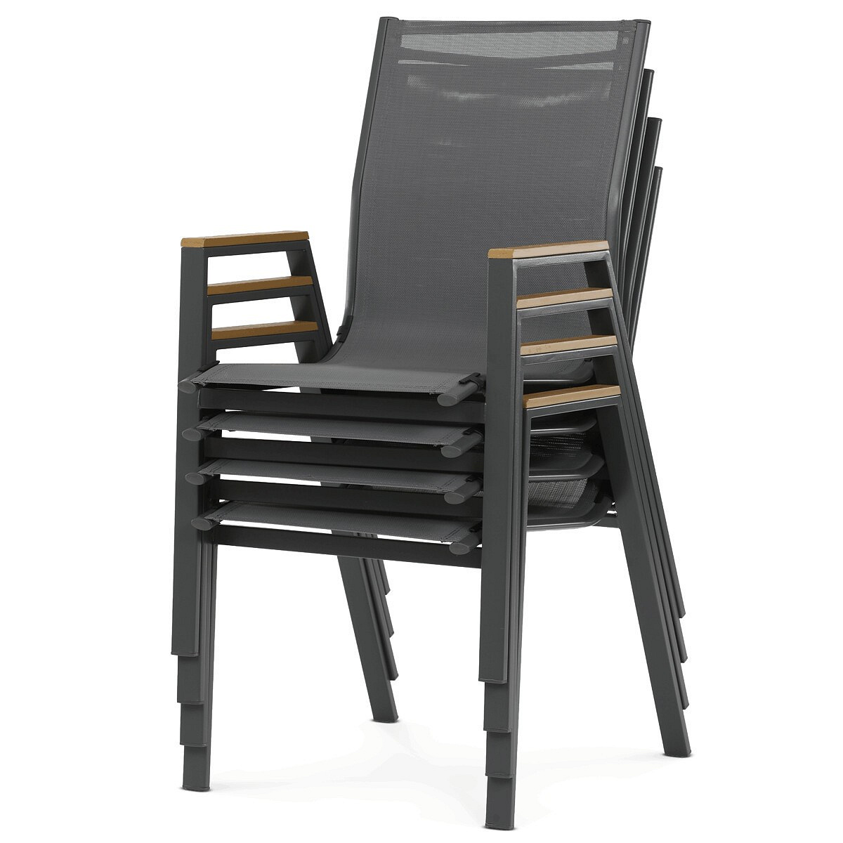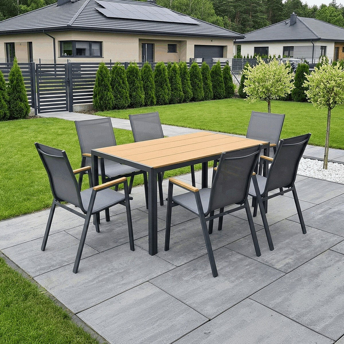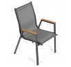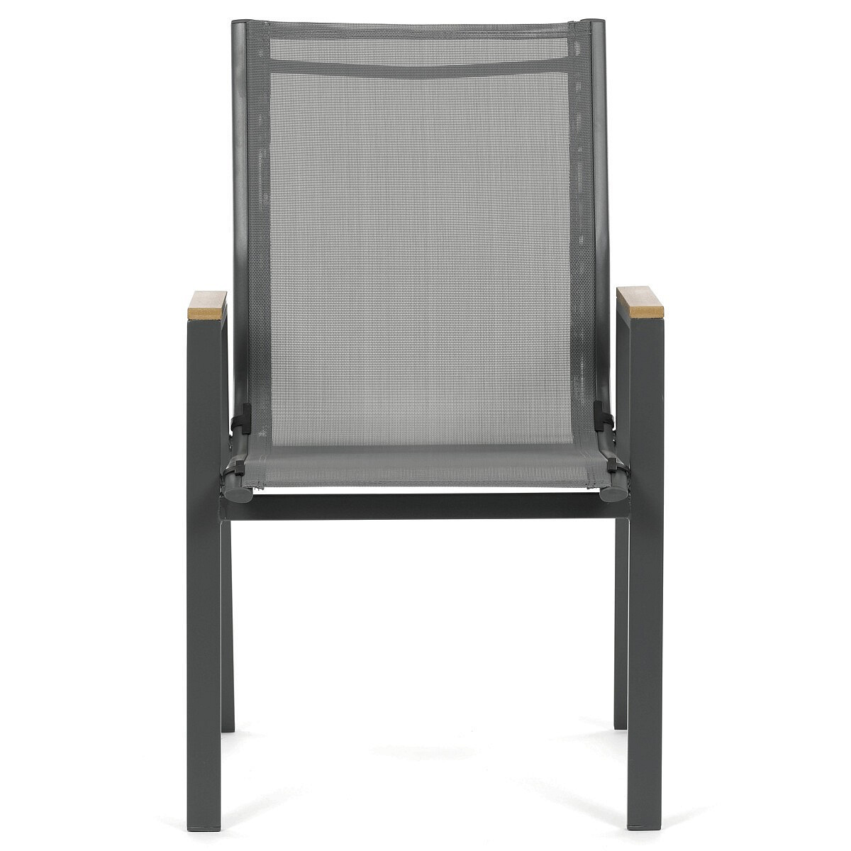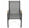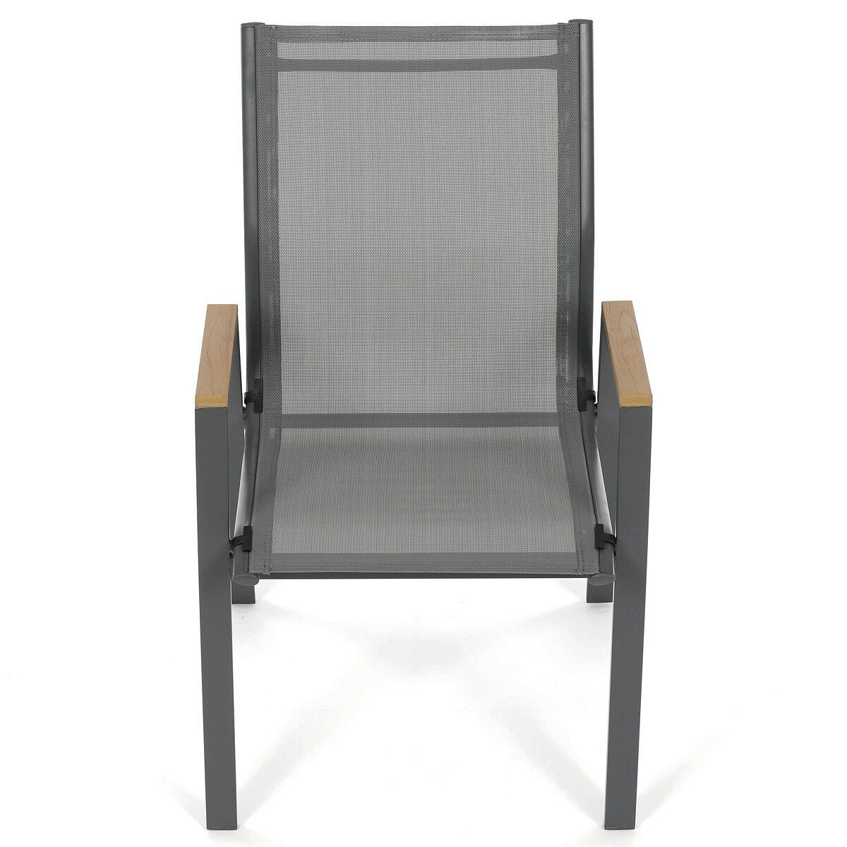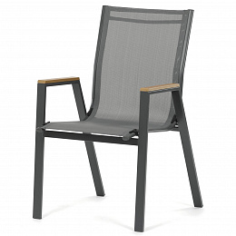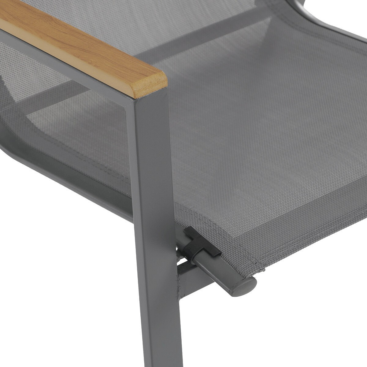 Moderní zahradní židle značky Autronic v elegantní šedé barvě představuje ideální volbu pro stylové venkovní posezení. Sedák i opěrák z kvalitního textilu zaručuje pohodlí a snadnou údržbu. Pevná kovová konstrukce s práškovou povrchovou úpravou zaručuje odolnost vůči vnějším vlivům. Polywoodové područky dodávají přírodní akcent, který krásně kontrastuje s minimalistickým designem. Bez nutnosti montáže je židle ihned připravena k použití, což oceníte při rychlém zařizování venkovního prostoru. Skvěle se hodí k venkovním stolům na terase nebo zahradě.