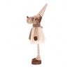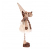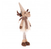 Látkový sob v béžovo-hnědém teplém oblečení vnese do vašeho domova veselou a hřejivou atmosféru. Jeho roztomilý obličej, špičatá čepice s bambulí a celkově veselý vzhled zútulní každý interiér. Tato látková figurka, hebká na dotek, se skvěle hodí jako dekorace na poličku, stůl nebo ji můžete umístit i na pohovku nebo gauč, kde bude vaším hravým společníkem.