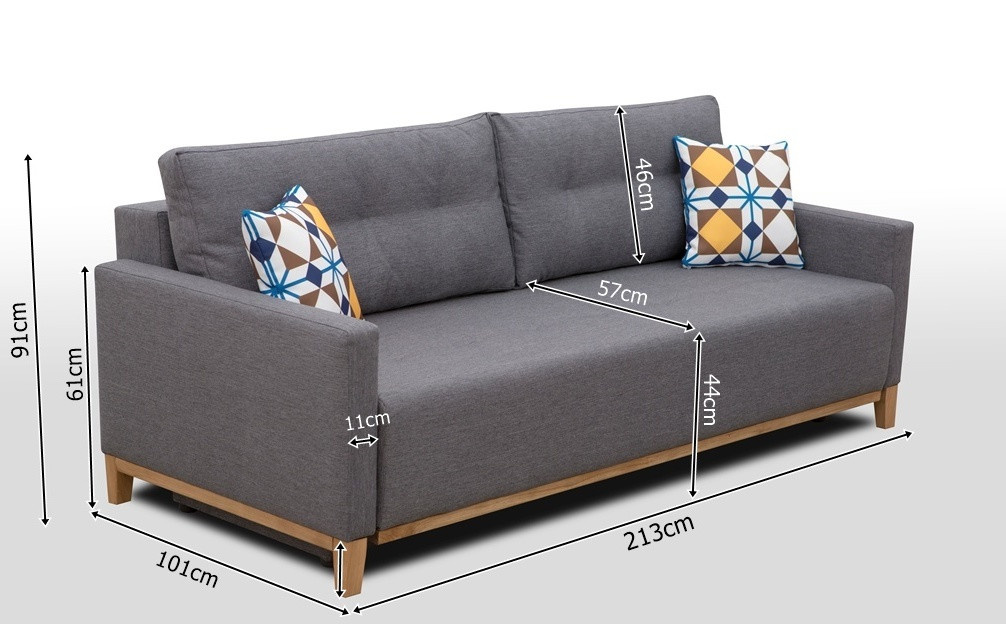 Pohovka Aristo ve skandinávském designu zaujme především svým jednoduchým a funkčním zpracováním. Pohovka je rozkládací a samozřejmostí je i úložný prostor, který poslouží např. na lůžkoviny. Jednoduchým rozložením pomocí automatu, získáte lůžko k příležitostnému přespání Vaší návštěvy. Návod na rozložení můžete shlédnout v krátkém gifu v doplňkových fotografiích. Naleznete tam také detailní rozměry pohovky. Pohodlí při sezení zajišťuje výplň sedáku, která je složena z pružin bonell a kvalitní PUR pěny a také opěrné polštáře, které jsou odnímatelné a můžete si je přizpůsobit podle svých potřeb. Pohovku nabízíme v několika barevných provedeních. Úvodní fotografie je ilustrační, vzorek látky, ve které bude pohovka dodána, je vyobrazen v doplňkových fotografiích. Moření dřeva není možno zvolit. V ceně pohovky jsou 2 malé vzorované polštářky, které jsou vyobrazené na fotografii. Ostatní vyobrazené doplňky a dekorace nejsou v ceně.