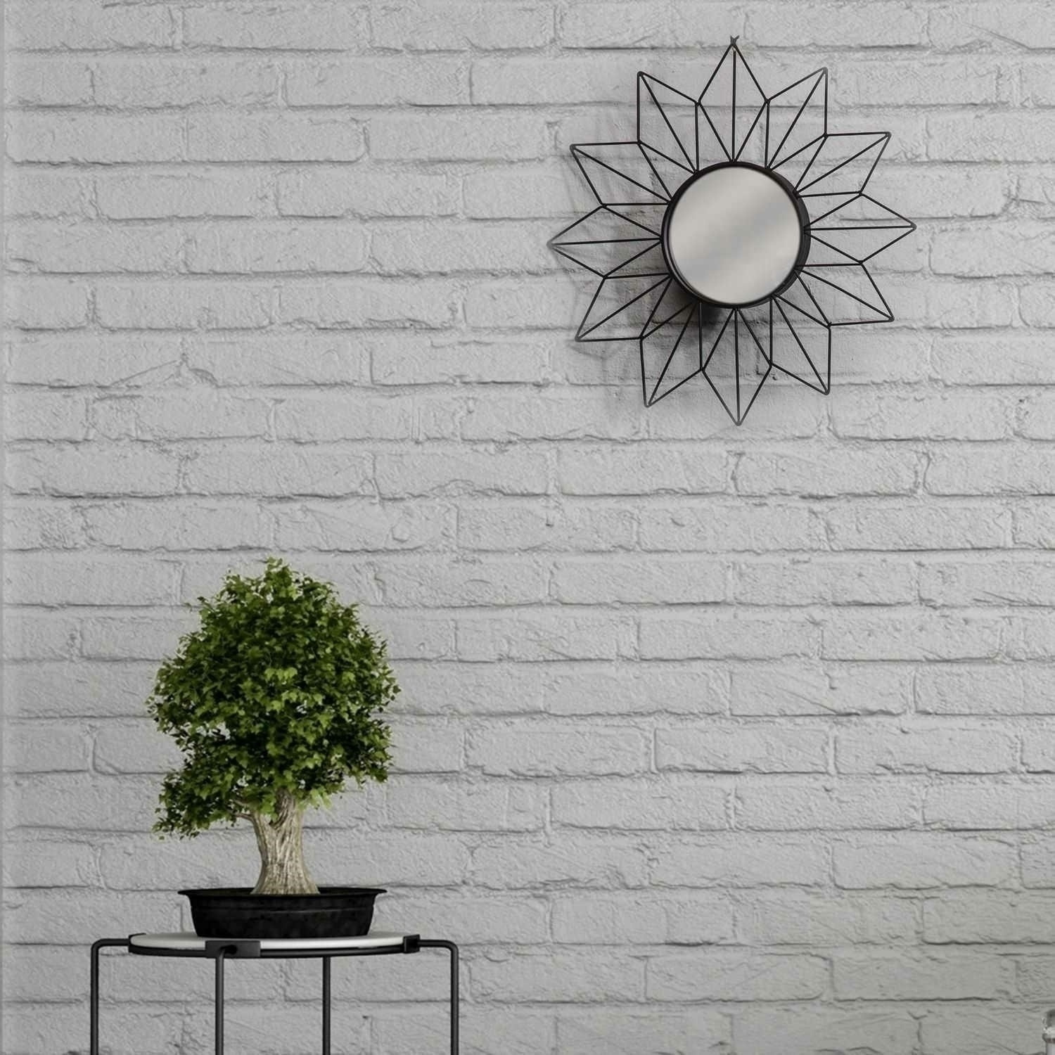 Nadčasové loftové zrcadlo s geometrickými drátěnými liniemi je především netypickou ozdobou každé moderní předsíně nebo obývacího pokoje. Dvanáctiramenné zrcadlo je poutavý dekorativní prvek, který oživí jak moderní, tak tradičně zařízené interiéry. Černý rám v geometrickém designu je inspirován industriálním stylem, který tě bez pochyb okouzlí.