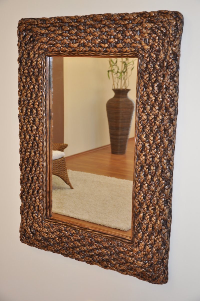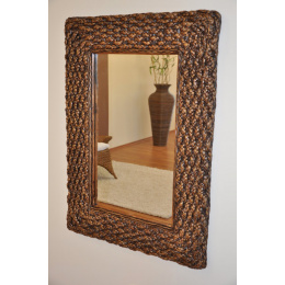 Rám zrcadla je vyroben z přírodního ratanu a výplet je tvořen ze stonků vodního hyacintu. | Celková velikost zrcadla včetně rámu je 72x5x97 cm, velikost skleněné plochy je 40x60 cm.