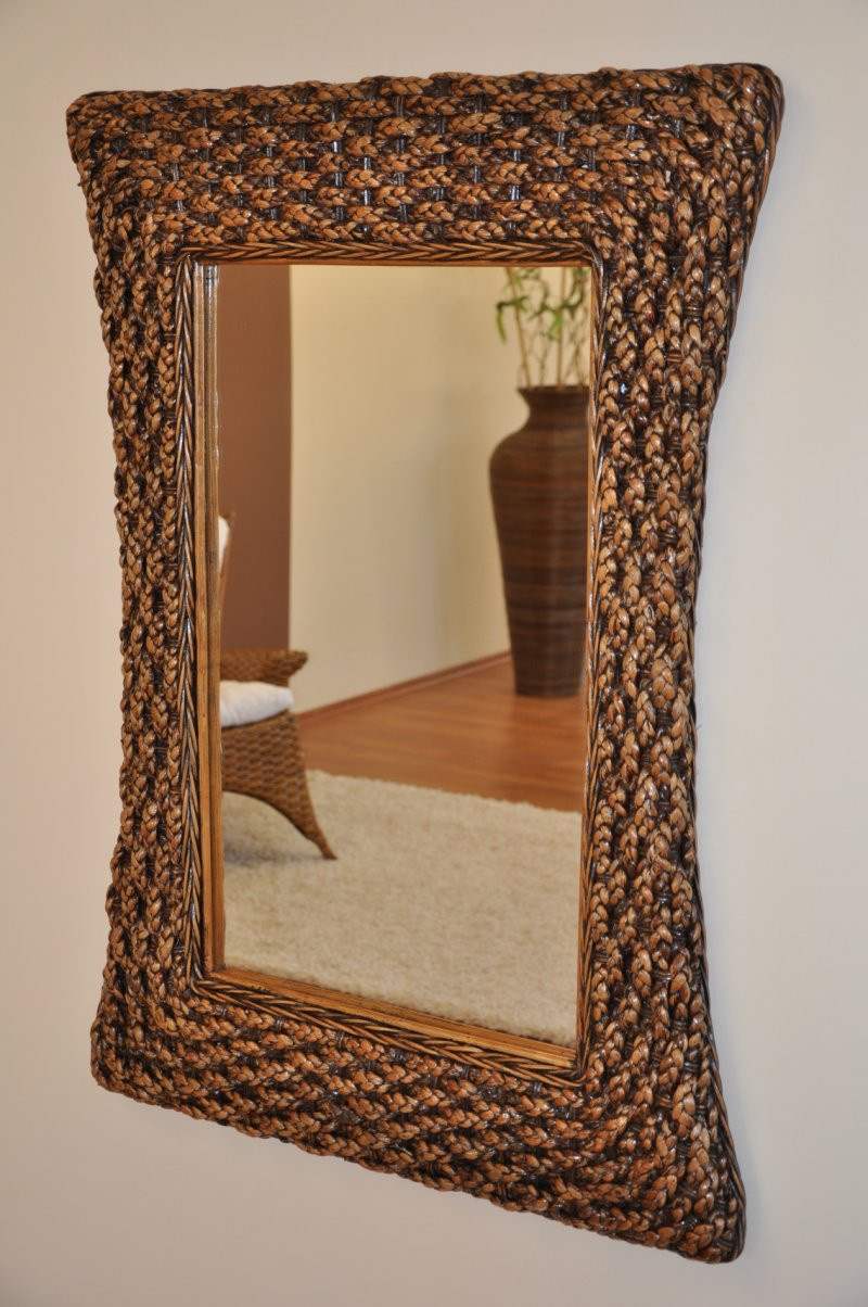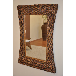 Rám zrcadla je vyroben z přírodního ratanu a výplet je tvořen ze stonků vodního hyacintu.
