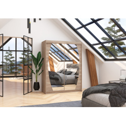 Posuvná skříň se zrcadlem ALEN je ideálním způsobem, jak uspořádat prostor. Nábytek je vybaven prostornými policemi a tyčí, na kterou můžete pověsit šaty, obleky, svrchní oděvy nebo košile. Na čelní stranu byla připevněna zrcadla, která opticky zvětšují prostor. Díky tomu, že skříň je posuvná, nemusíte vyčleňovat další místo na otevření dveří, což z ní činí ideální řešení pro malý pokoj nebo úzkou předsíň.