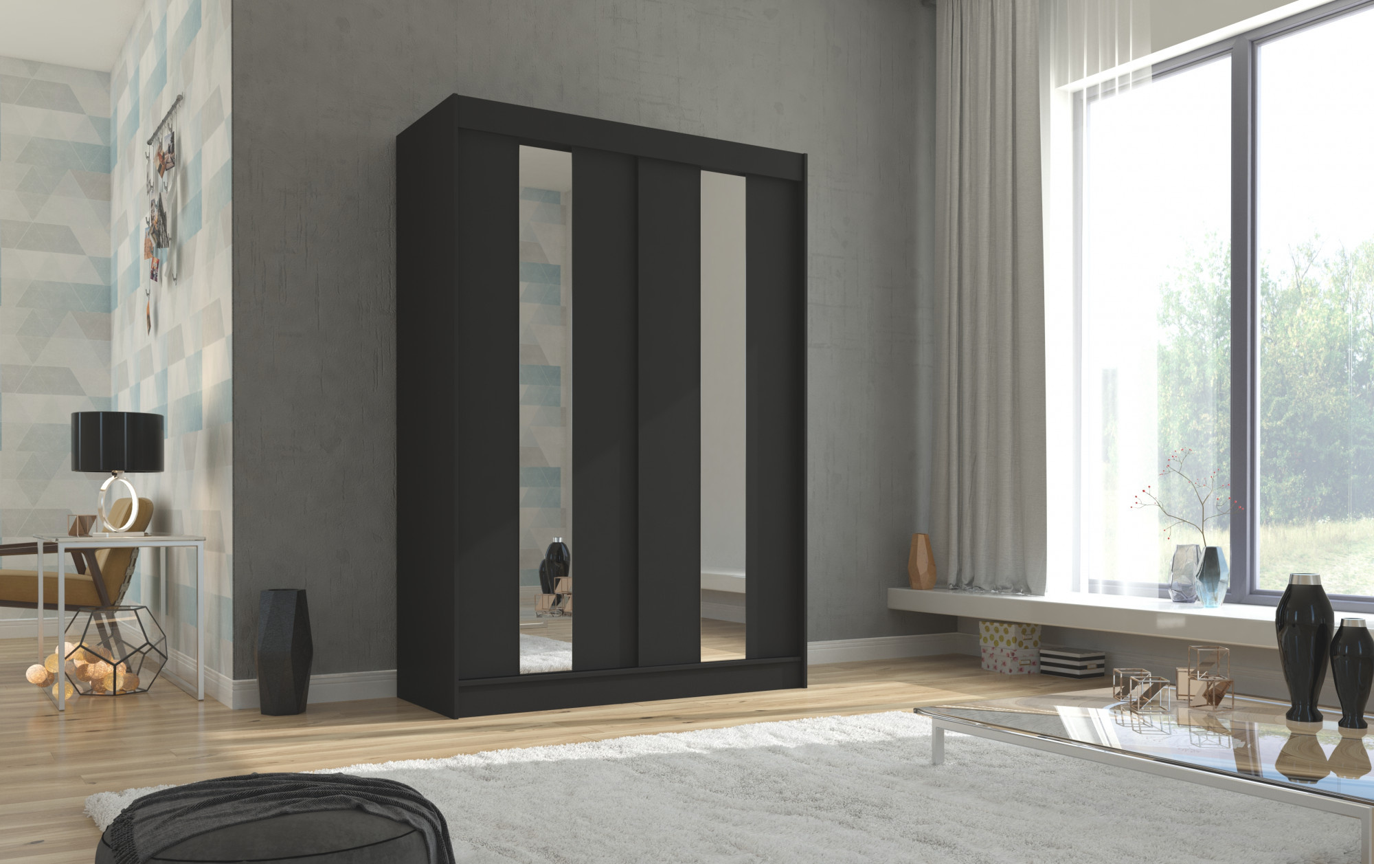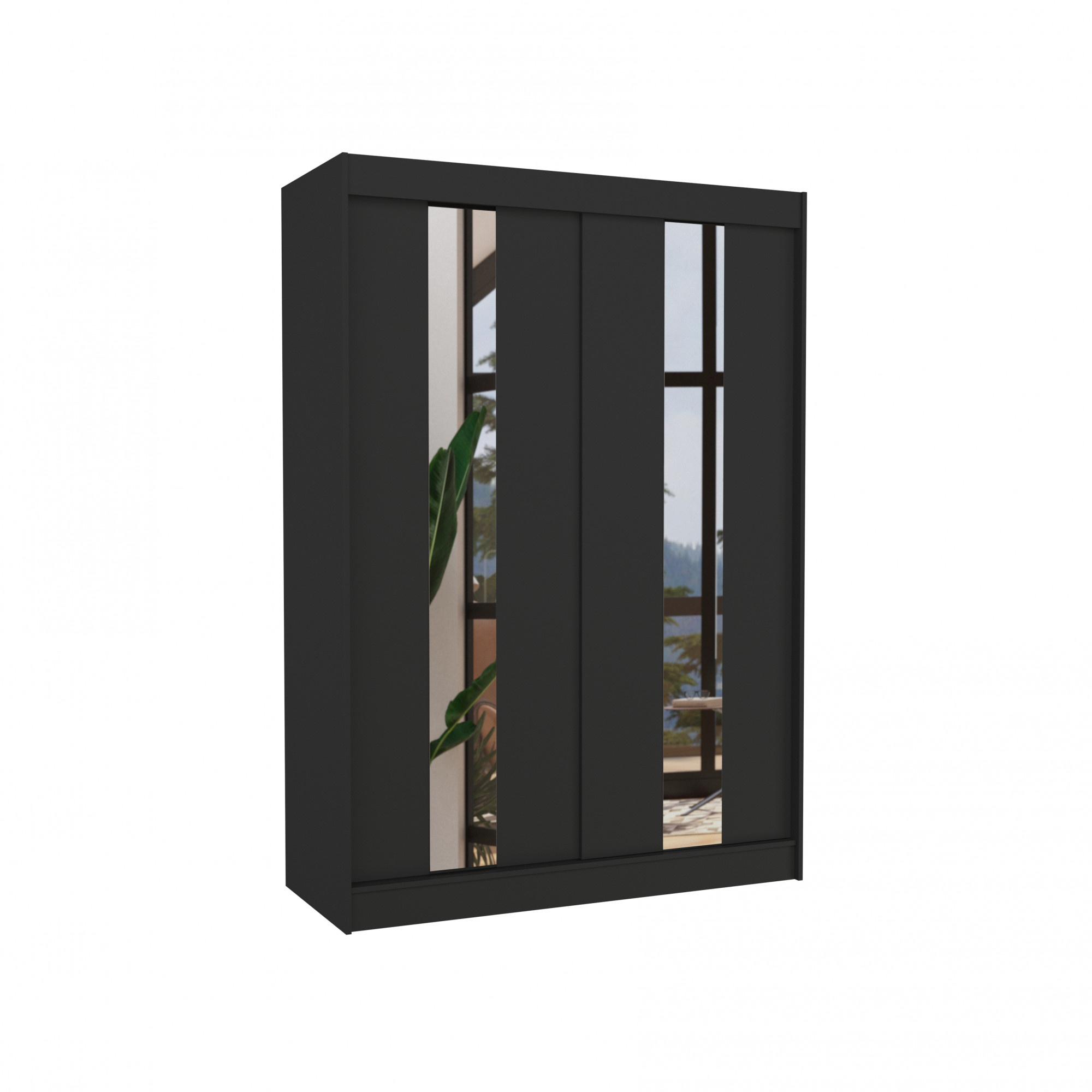 Posuvná skříň se zrcadlem BALTON 150 Černá+Černá