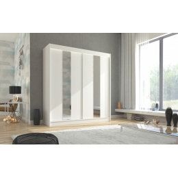 Šatní skříň s posuvnými dveřmi a zrcadlem BALTON 200 Bílá+Bílá