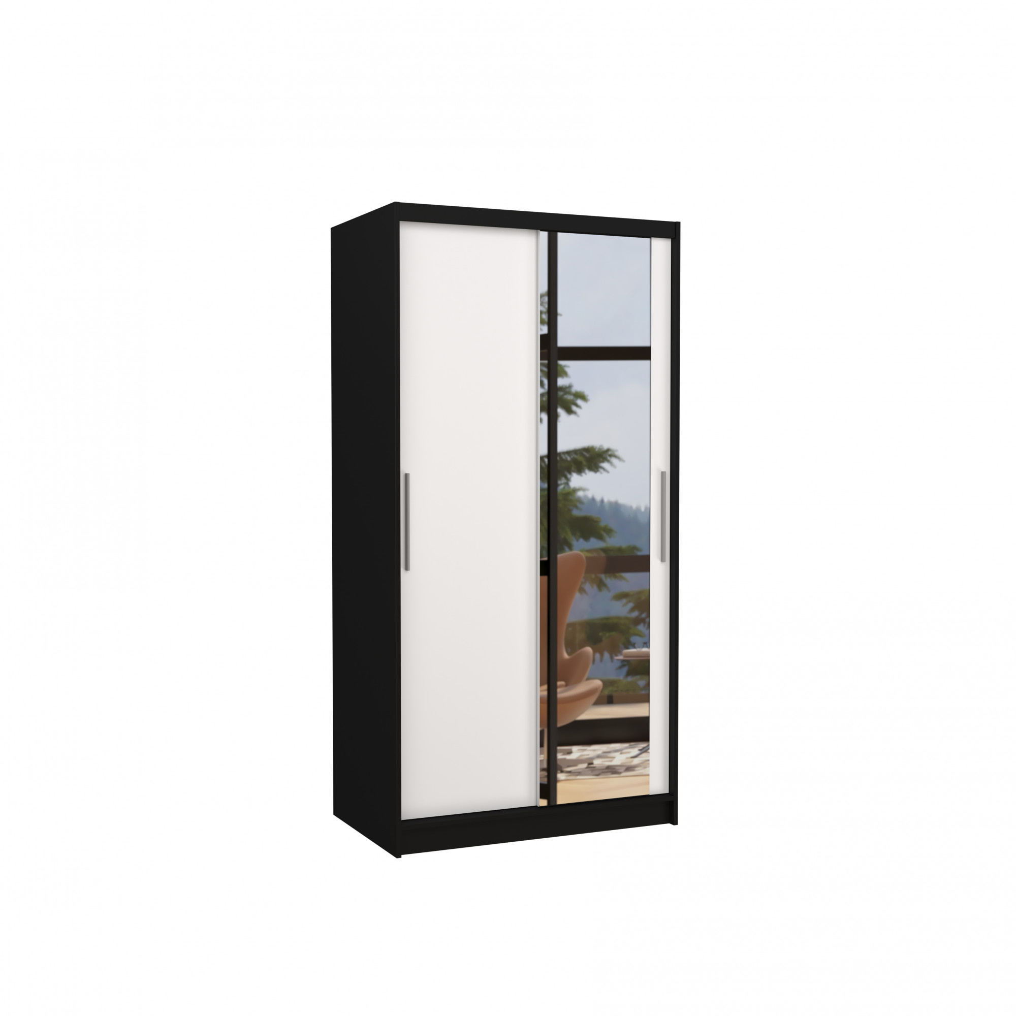 Posuvná skříň se zrcadlem BAROS 100 Černá+Bílá