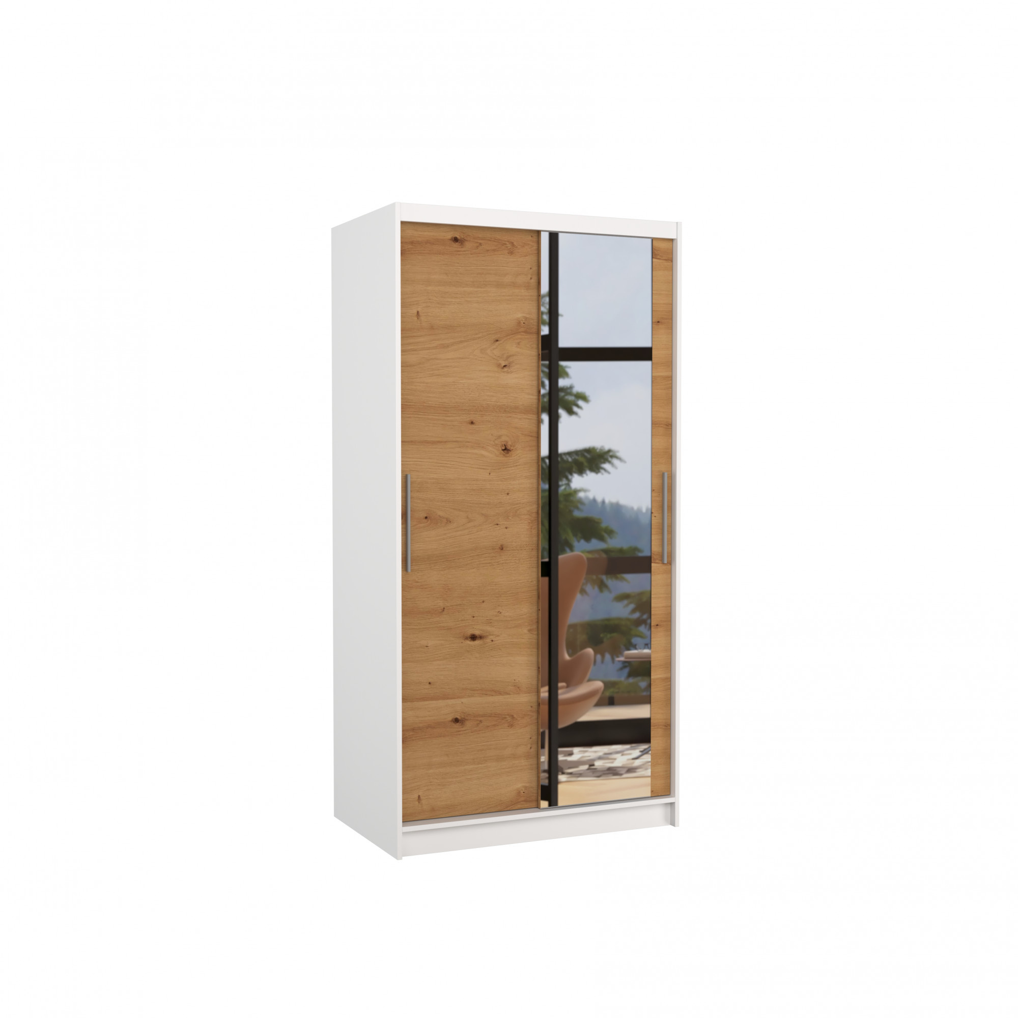 Posuvná skříň se zrcadlem BAROS 100 Bílá+Artisan