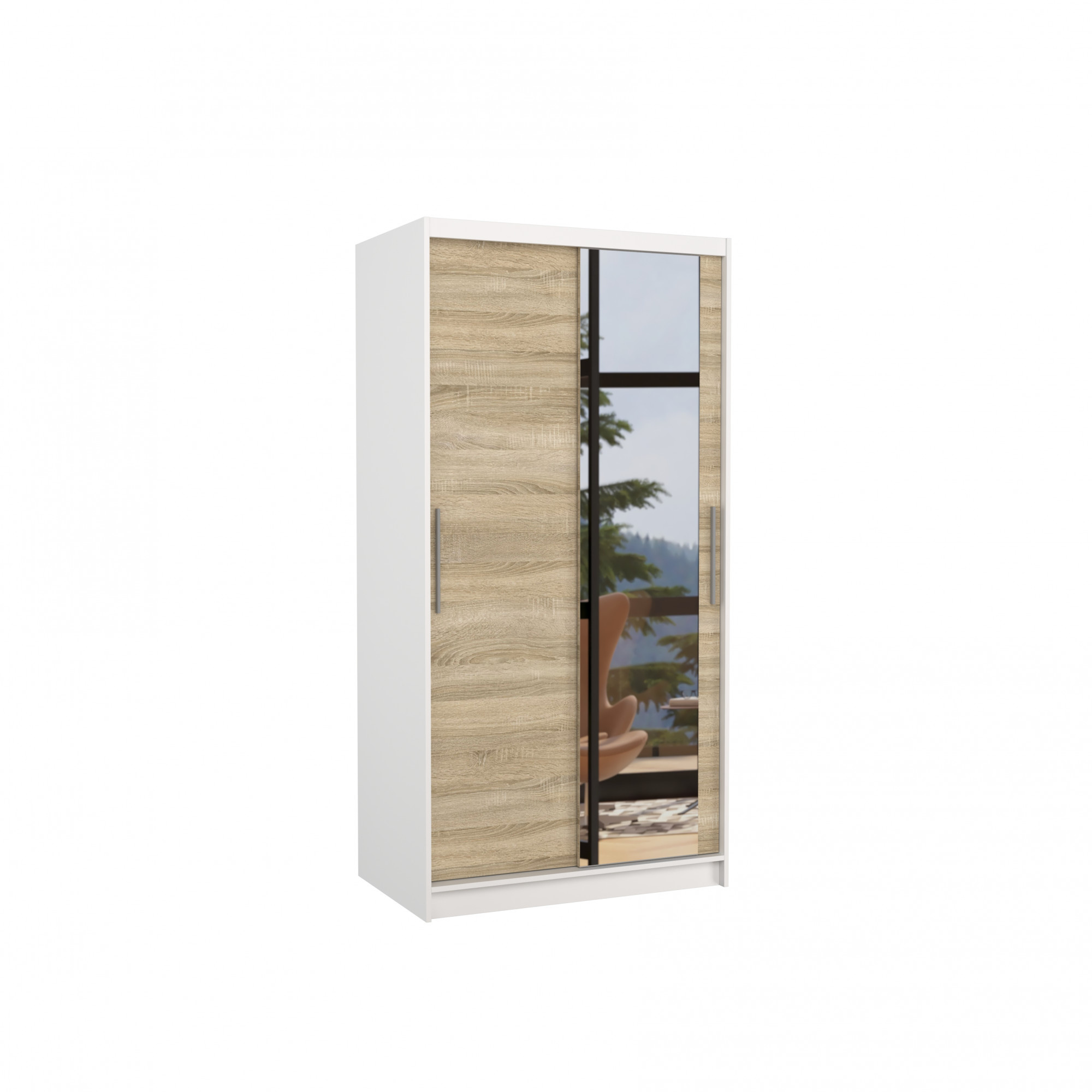 Posuvná skříň se zrcadlem BAROS 100 Bílá+Sonoma