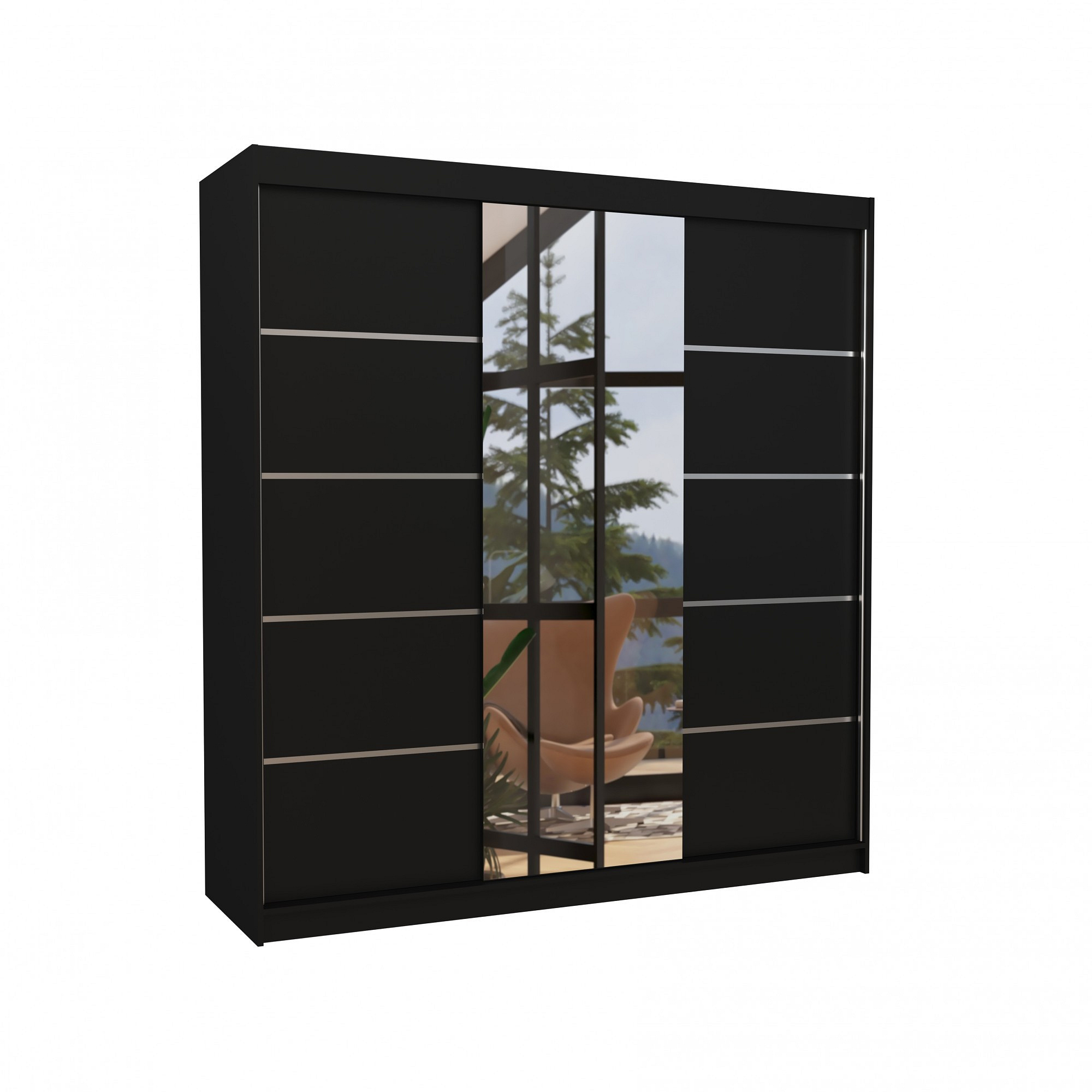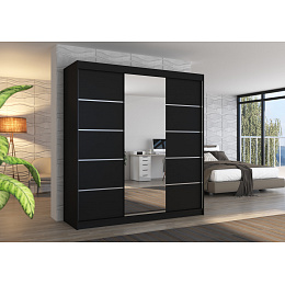 Posuvná skříň se zrcadlem BERGEN 200 Černá+Černá