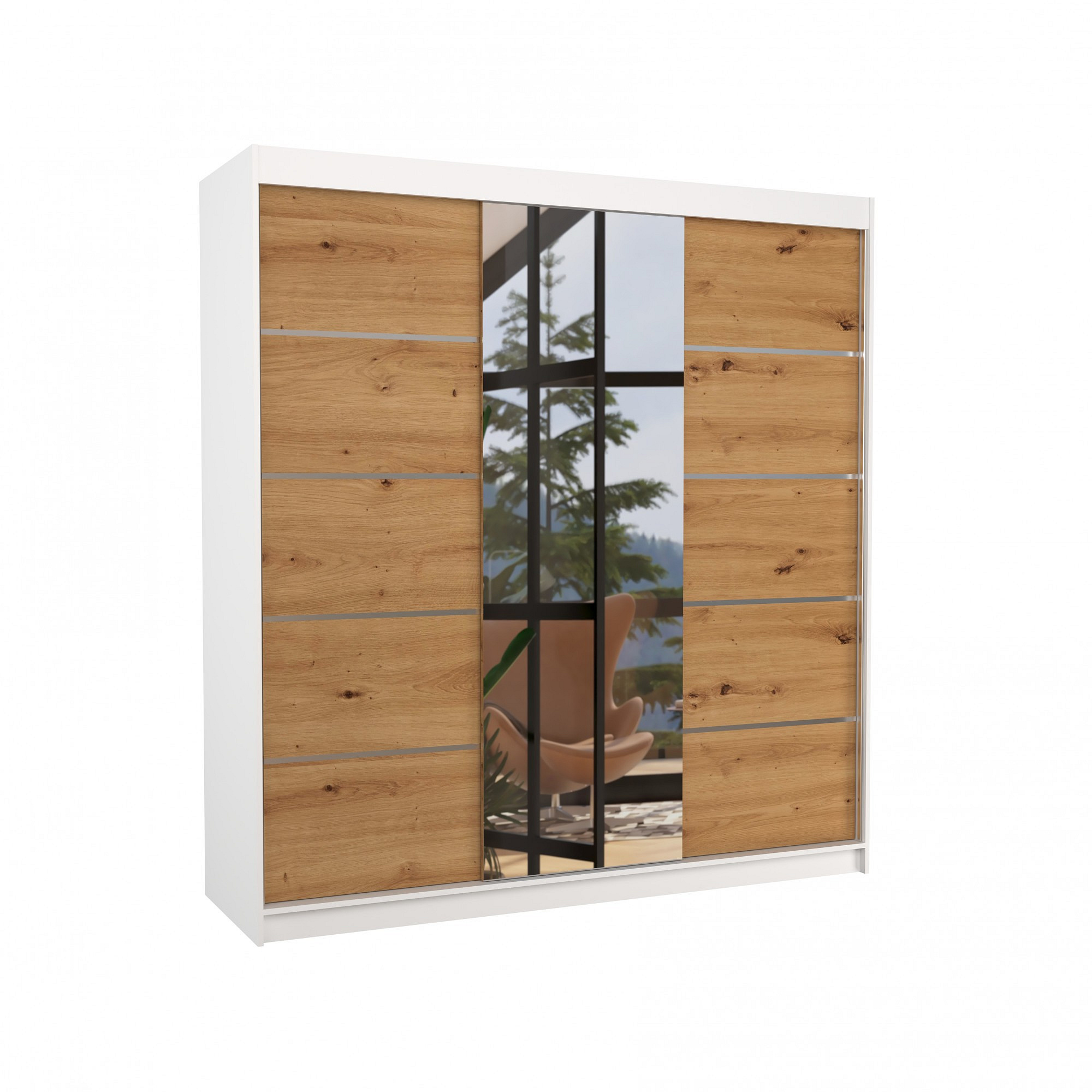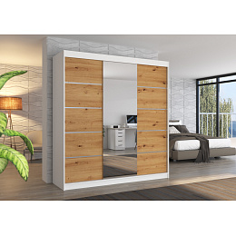 Posuvná skříň se zrcadlem BERGEN 200 Bílá+Artisan