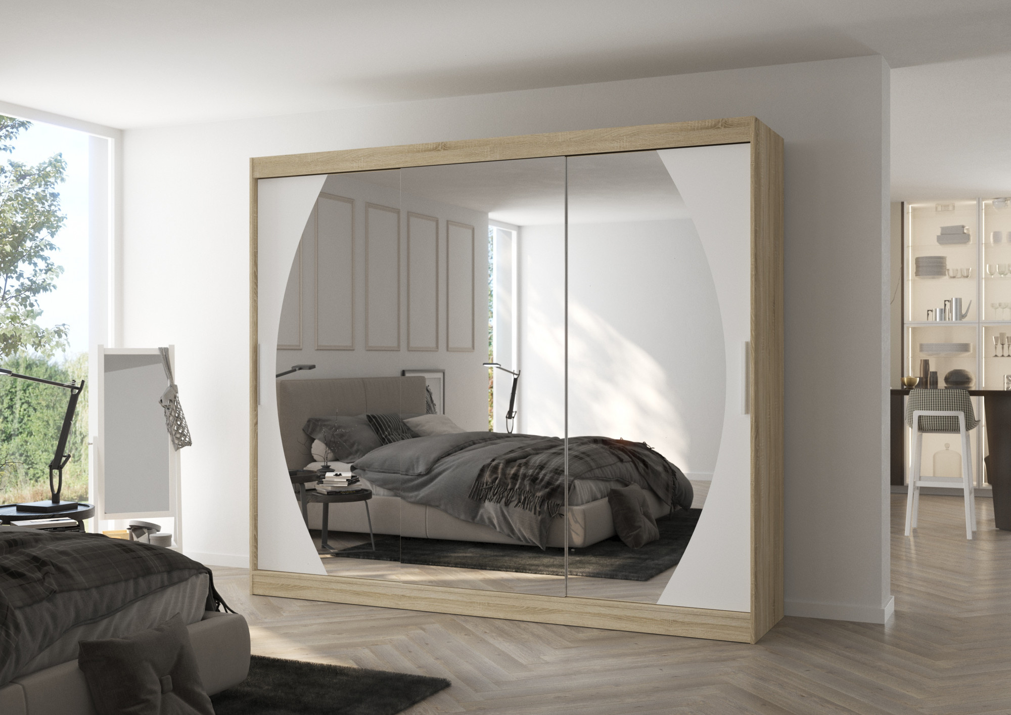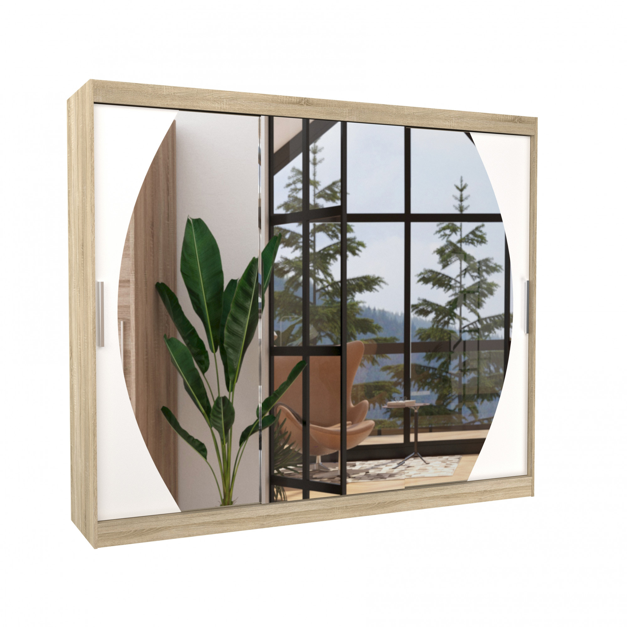 Posuvná skříň se zrcadlem CAMBE 250 Sonoma+White