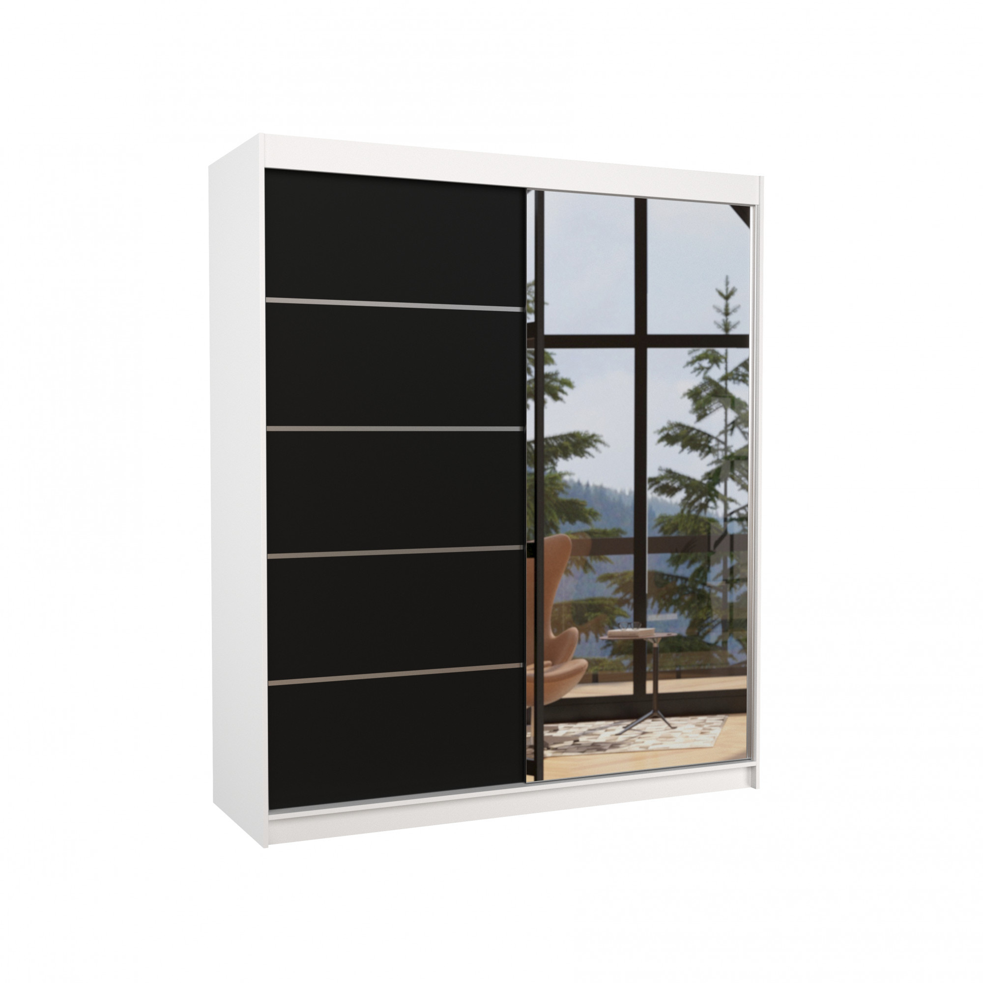 Šatní skříň s posuvnými dveřmi a zrcadlem CARO 180 Bílá+Černá