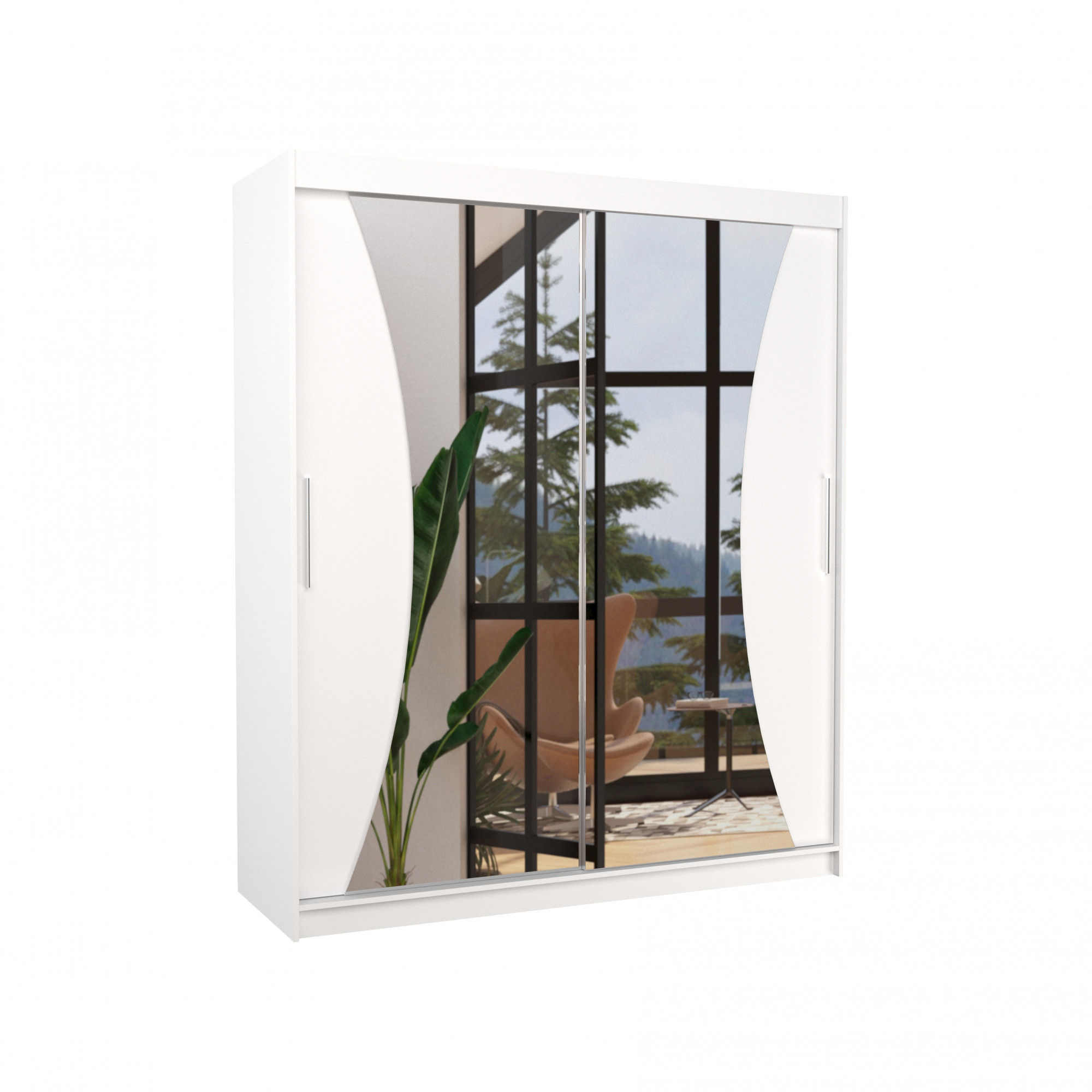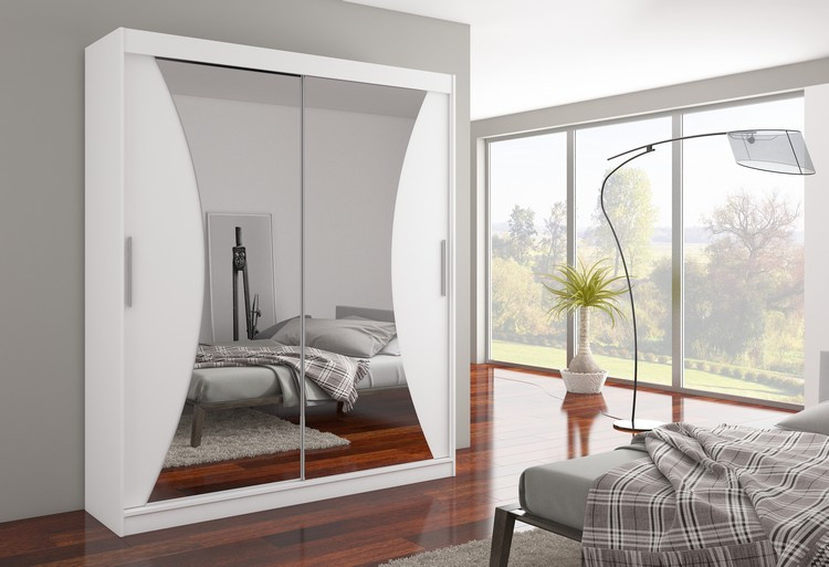 Posuvná skříň se zrcadlem CHARLOTTE 180 Bílá+Bílá