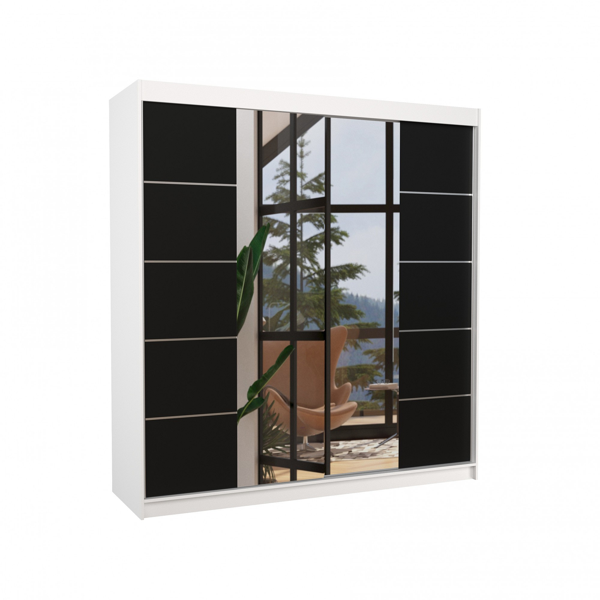 Posuvná skříň se zrcadlem DALMATIA 200 Bílá+Černá