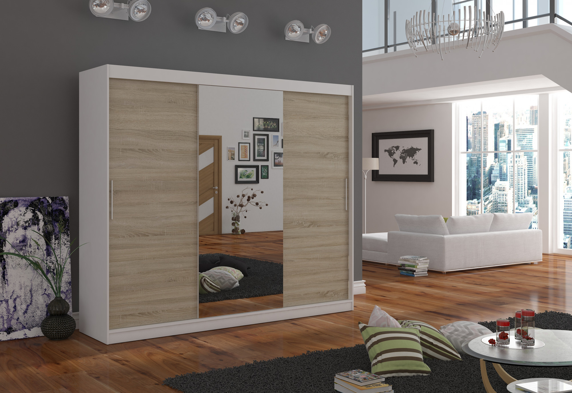 Šatní skříň s posuvnými dveřmi a zrcadlem DENIS 250 Bílá+Sonoma