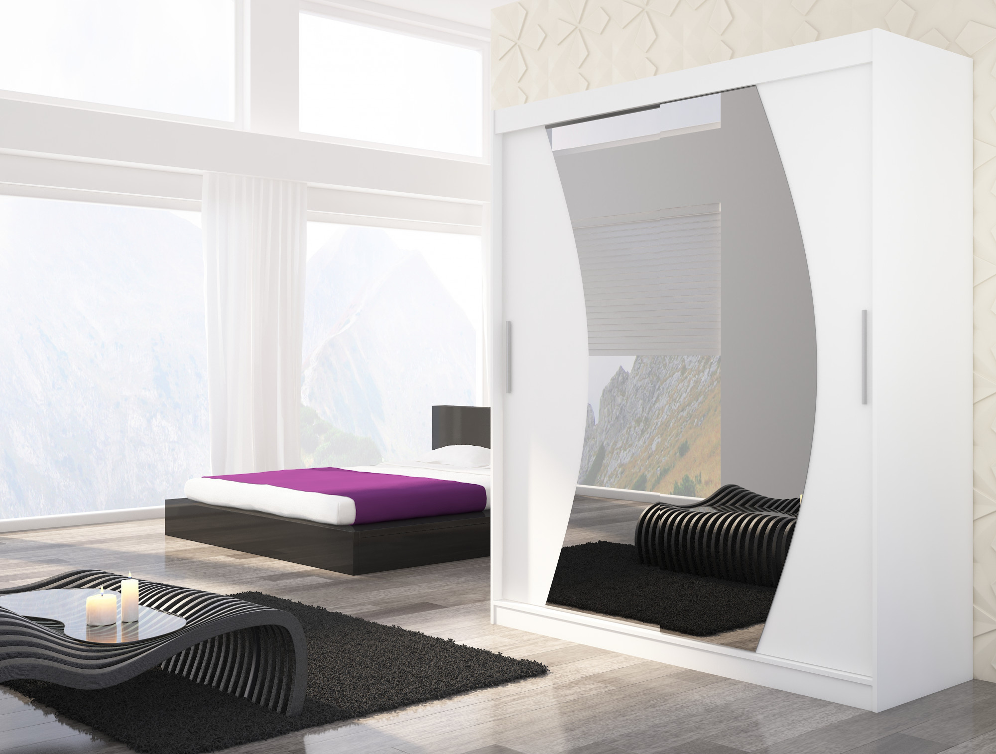 Šatní skříň s posuvnými dveřmi a zrcadlem DOLORES 180 Bílá+Bílá