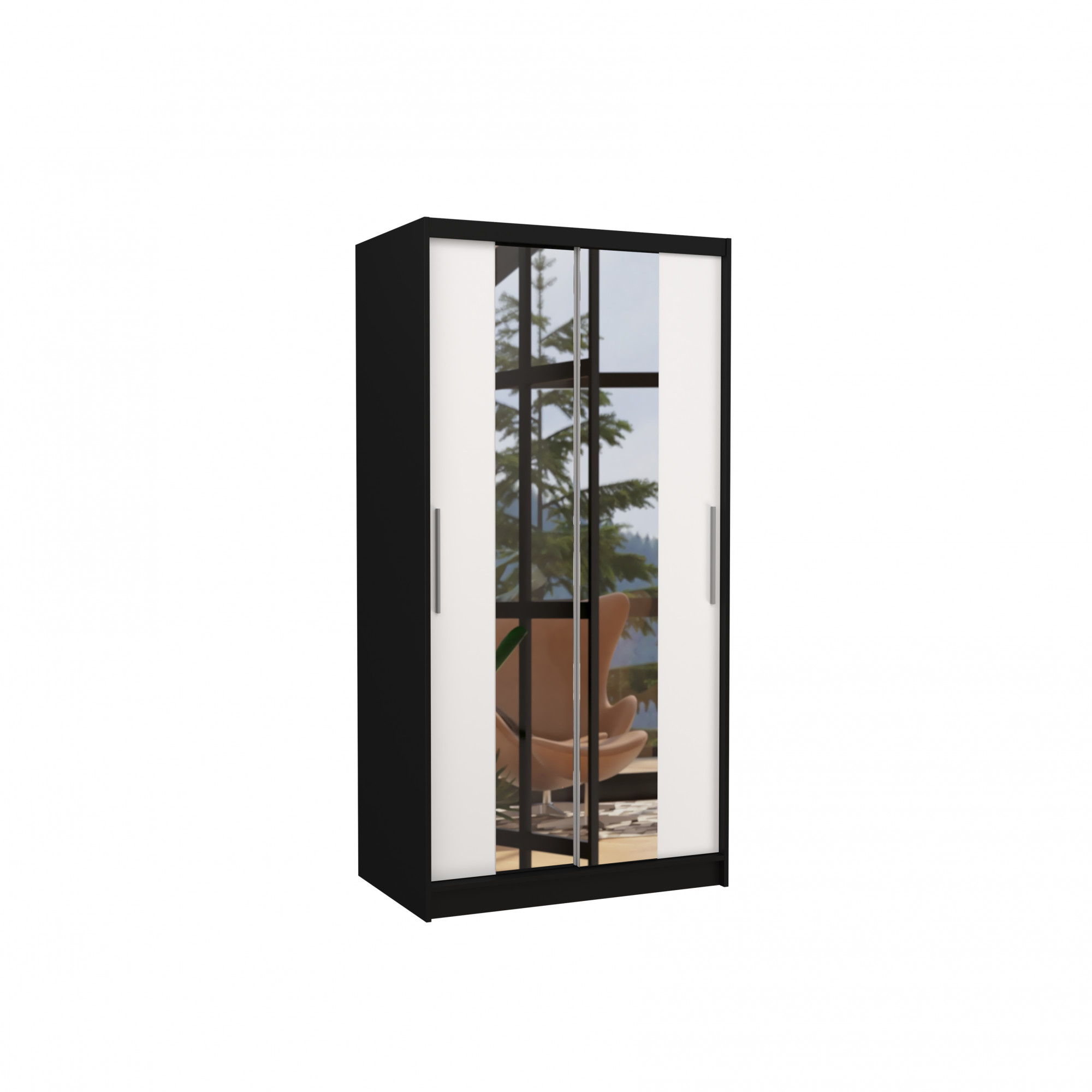Posuvná skříň se zrcadlem DRAGONIS 100 Černá+Bílá