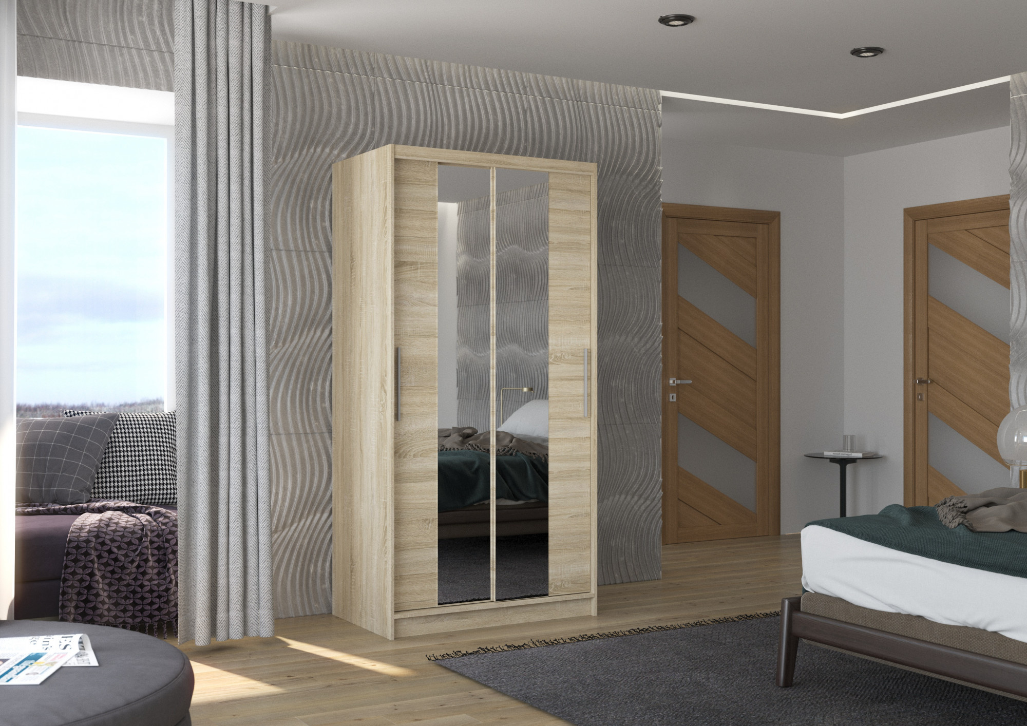 Posuvná skříň se zrcadlem DRAGONIS 100 Sonoma+Sonoma