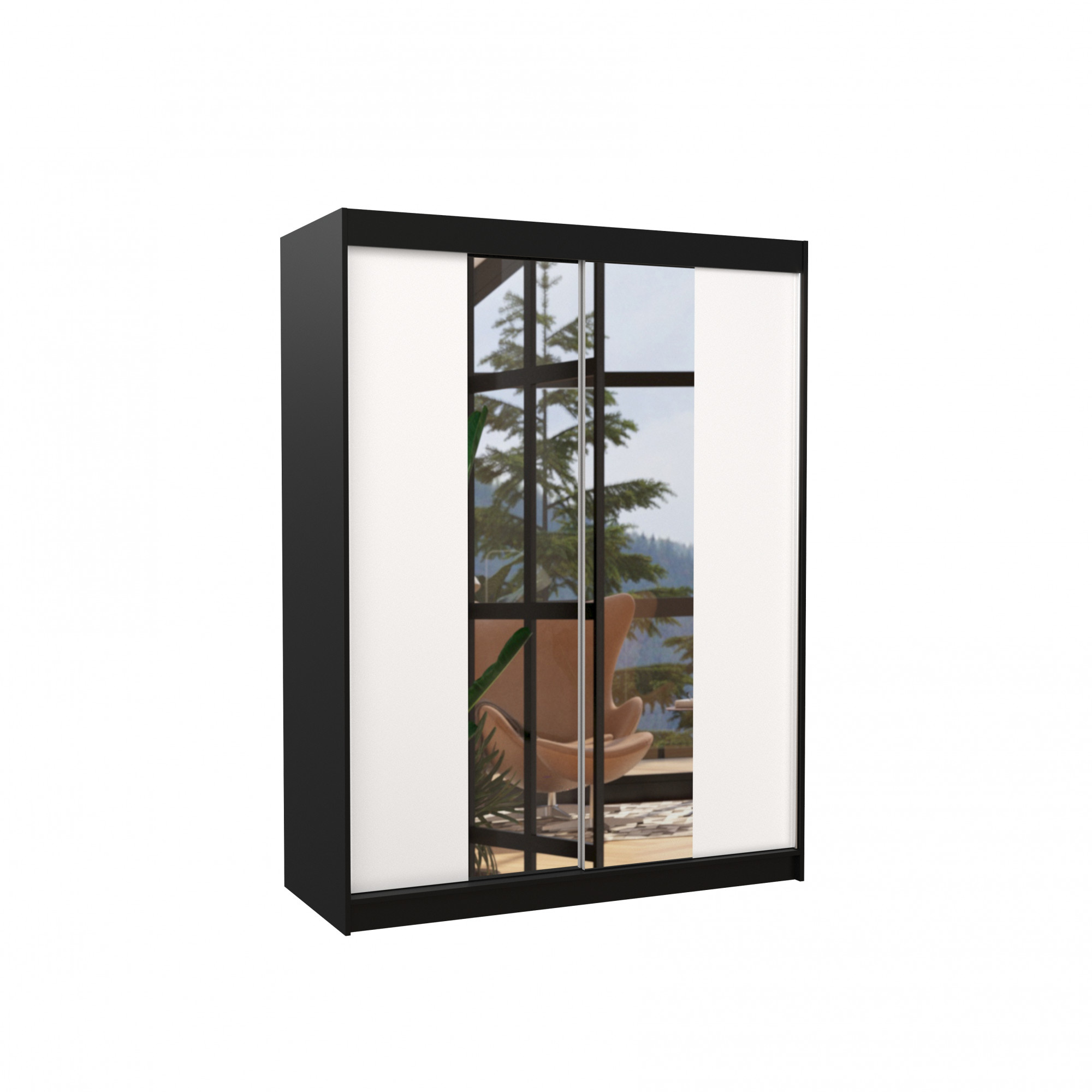Posuvná skříň se zrcadlem FEVER 150 Černá+Bílá